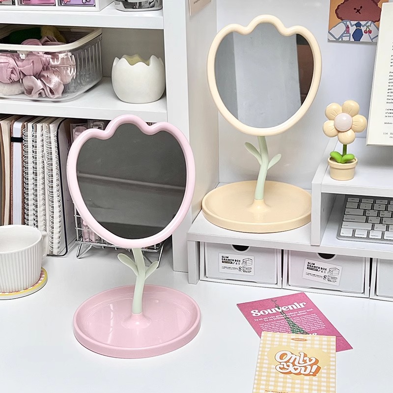 チューリップ化粧鏡 卓上スタンドミラー ジュエリー収納 学生寮 プラスチック製 家庭用鏡 化粧鏡