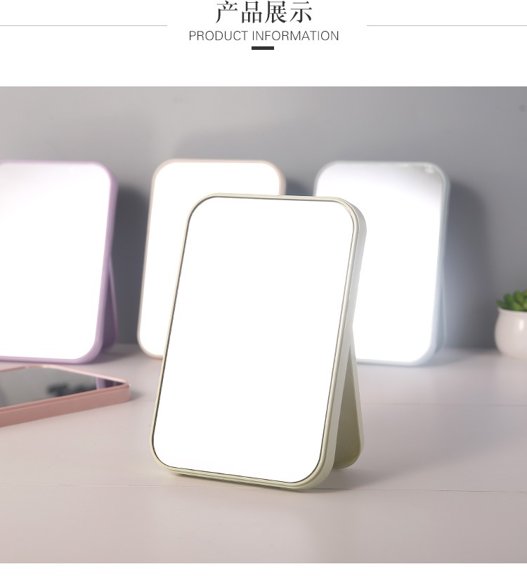 led化妆镜带灯卧室梳妆镜宿舍桌面塑料收纳化妆镜家用家居镜子