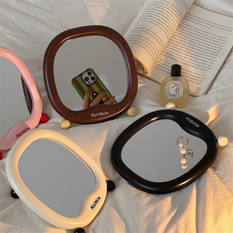 郁金香化妆镜塑料桌面台式家用收纳家居梳妆台奶油简约高级镜子