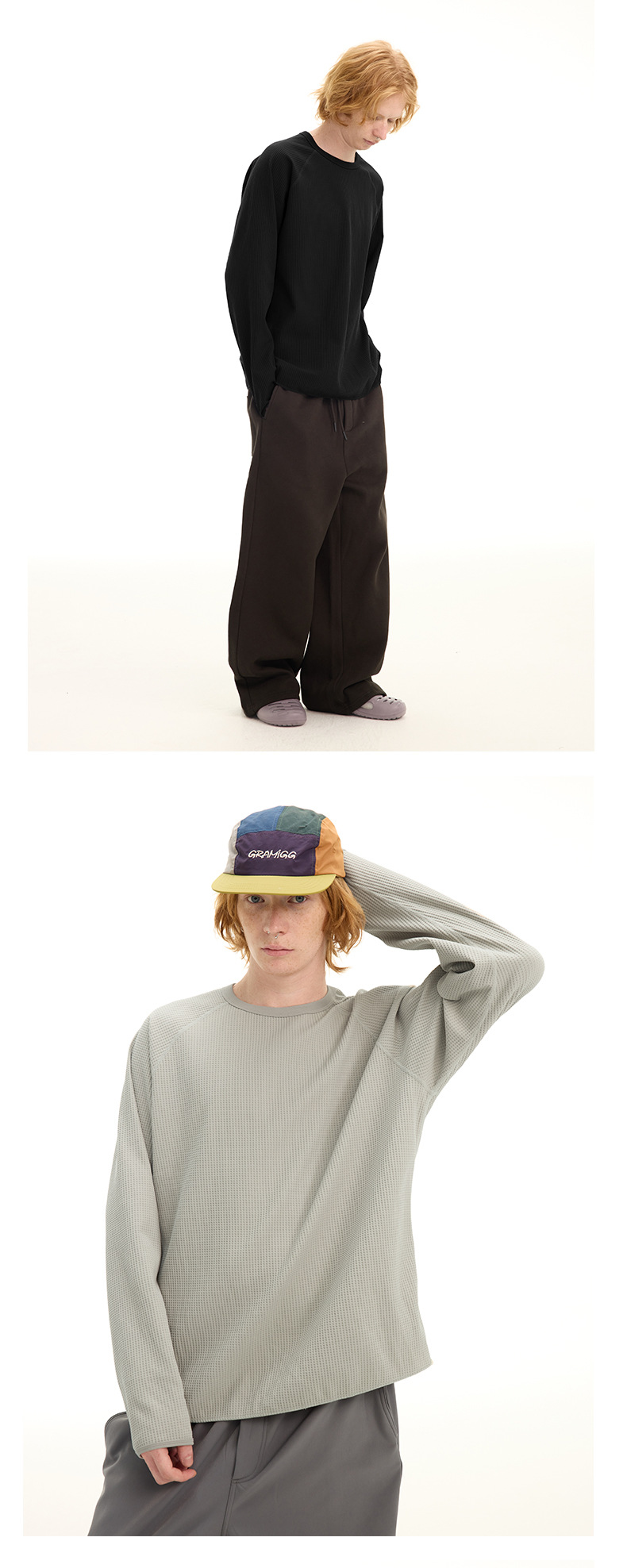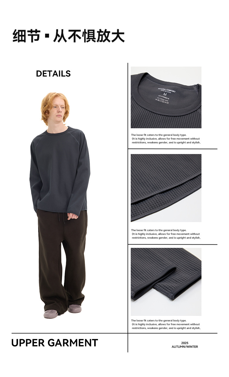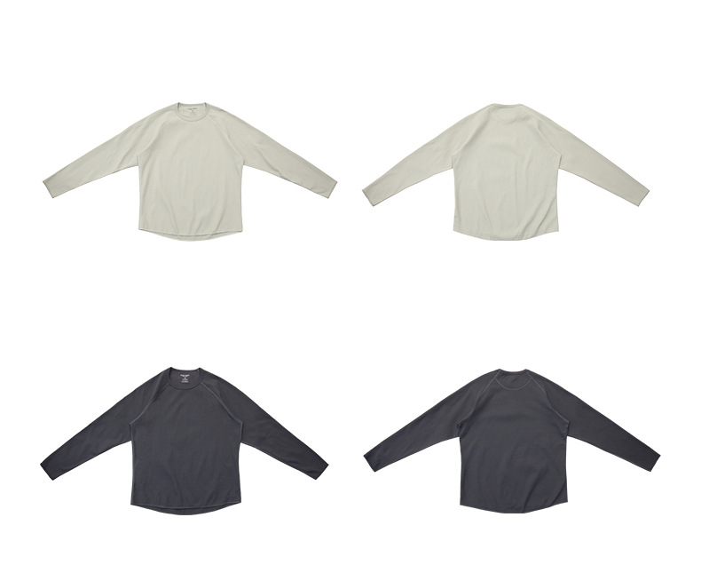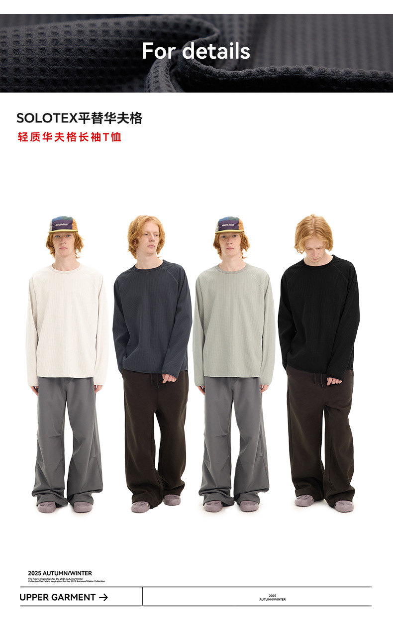 UNF秋冬新作アメリカ式偽2枚ワッフル純色長袖tシャツ320g丸首ニット男女