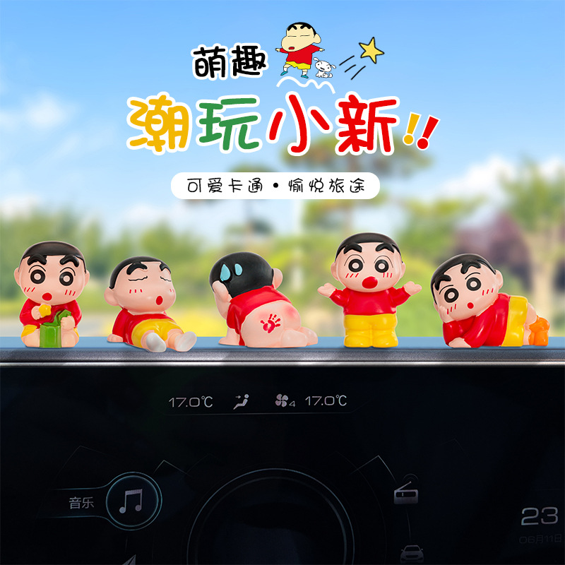 可爱卡通小新汽车摆件电动车内饰中控台显示屏幕办公位车载装饰品