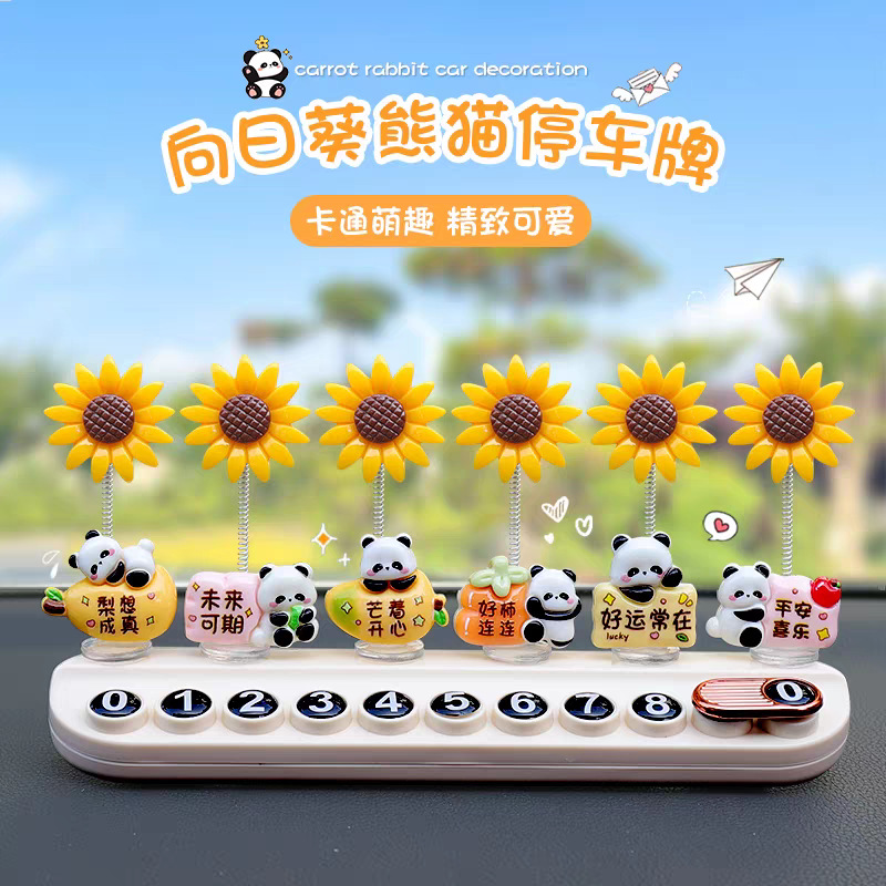 挪车电话牌2025网红新款向日葵熊猫汽车上临时停移车号码显示牌女