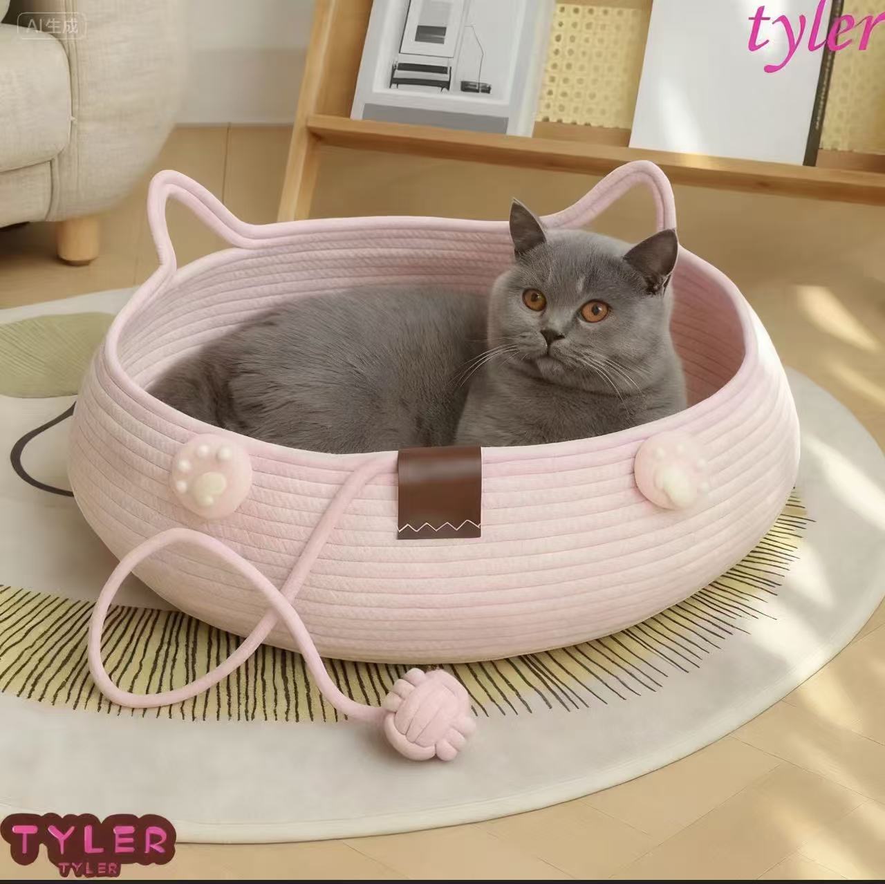 手織りピンク猫の巣、ネット有名人の国境を越えた人気モデル、オールシーズン対応のユニバーサル耐摩耗性と耐傷性の綿糸ペットの巣