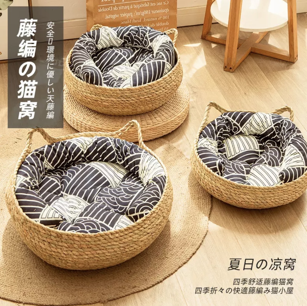 藤编猫窝夏日夏天沙发小猫夏季四季通用幼猫猫窝编织猫咪睡窝凉席