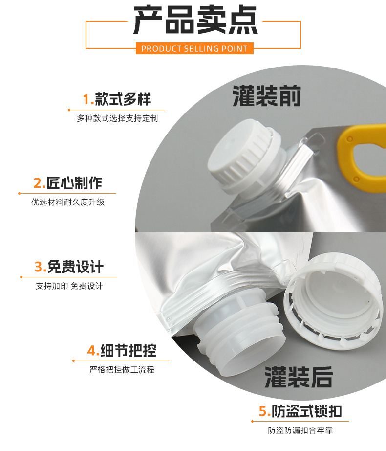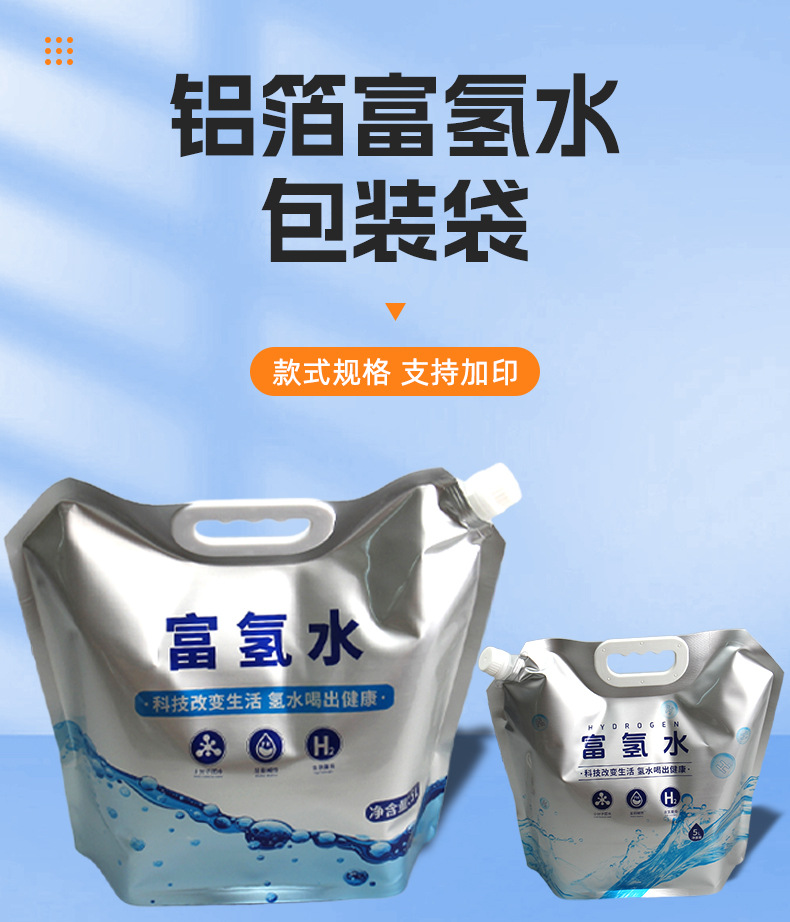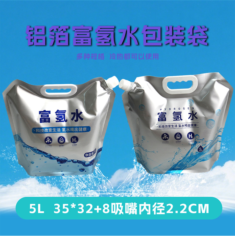 现货5L铝箔斜嘴富氢水袋食品级避光锁氢富氢水专用自立吸嘴包装袋