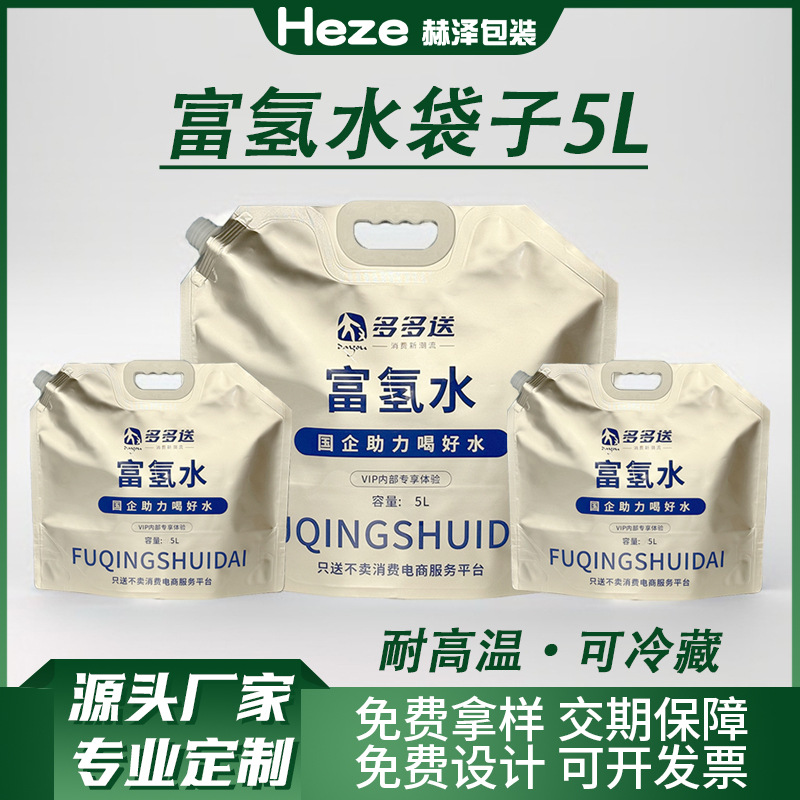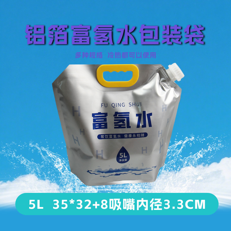 现货5升富氢水袋子大容量水袋铝箔加厚食品级锁氢自立吸嘴包装袋