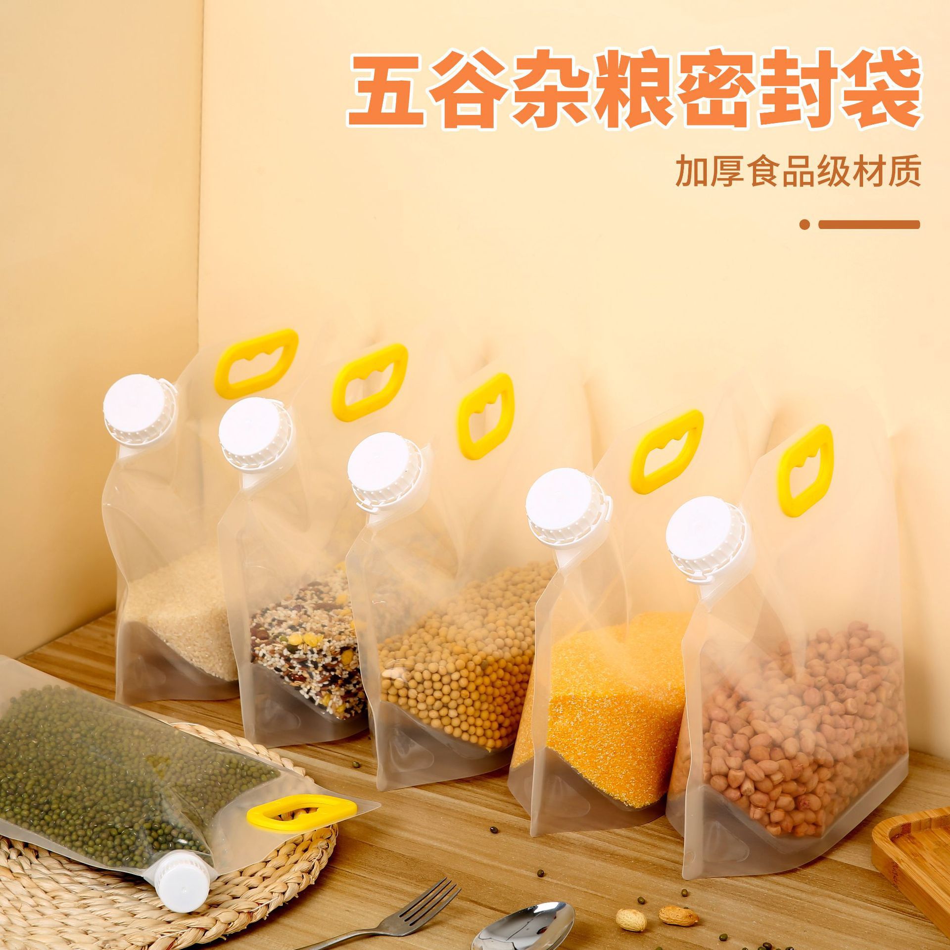 現物五穀雑穀包装袋卸売り米豆自立食品防湿手提げ透明分装吸口袋