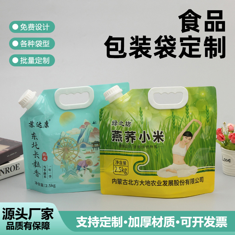 スポット 5kg 米包装袋、米の香りのユニバーサルハンドバッグ、四辺シール米レンガ真空 2.5kg 米袋のカスタマイズ