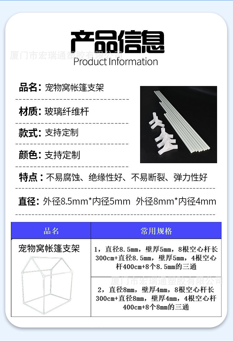 定制宠物窝帐篷支架可拆卸宠物猫窝狗窝支撑杆防水耐磨玻璃纤维杆