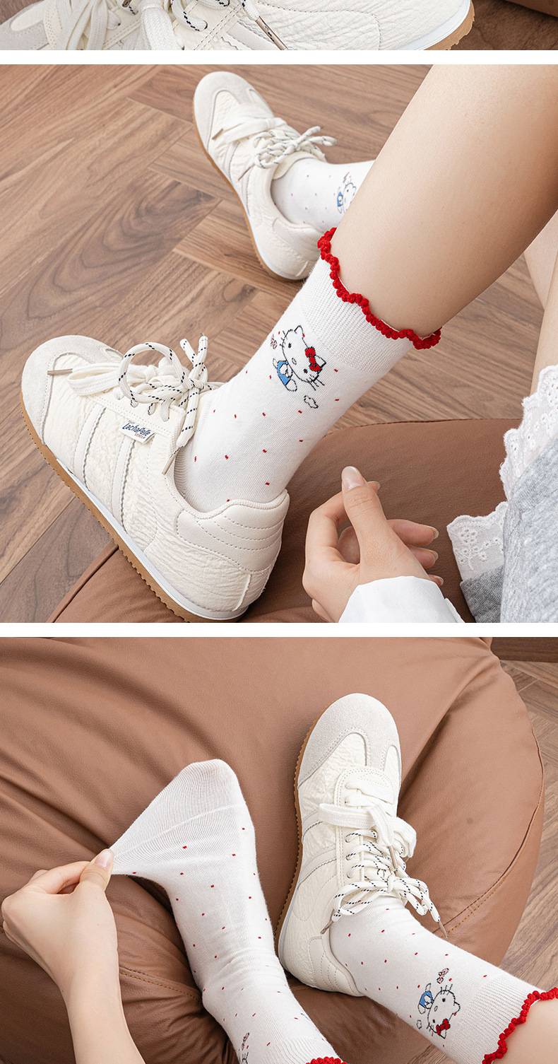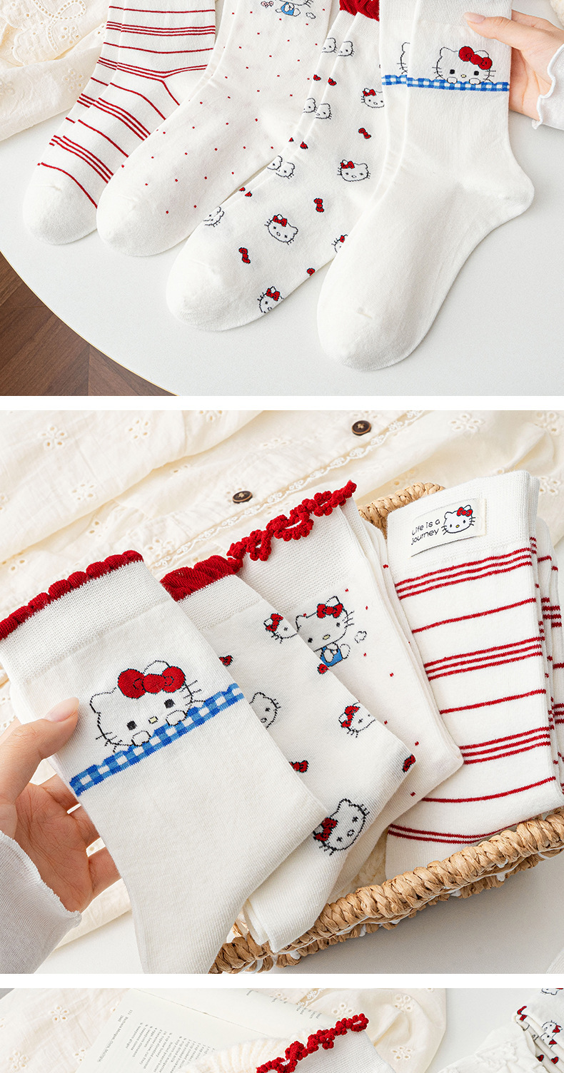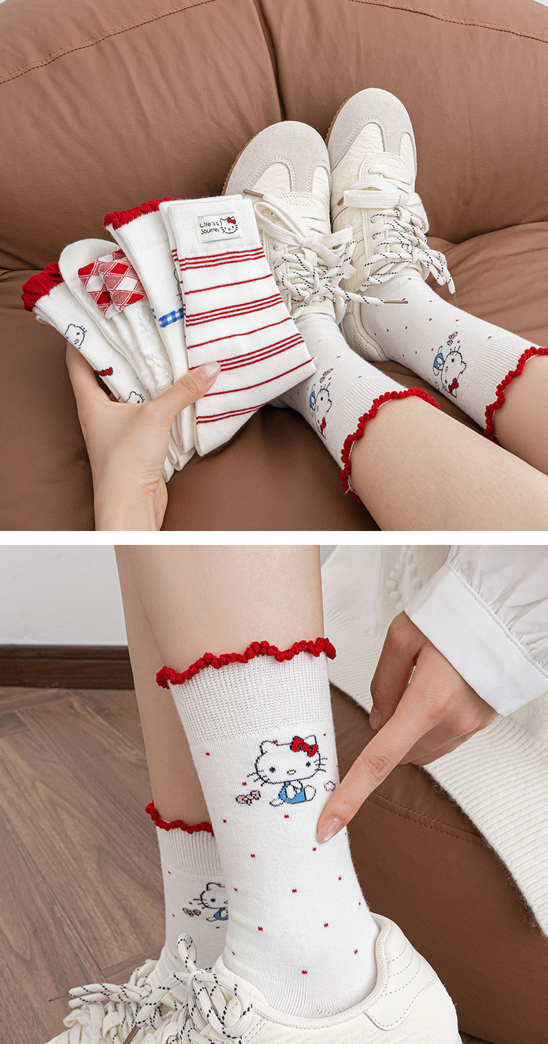 25新款日系卡通猫可爱袜子女生中筒袜秋季棉袜学生条纹花边堆堆袜