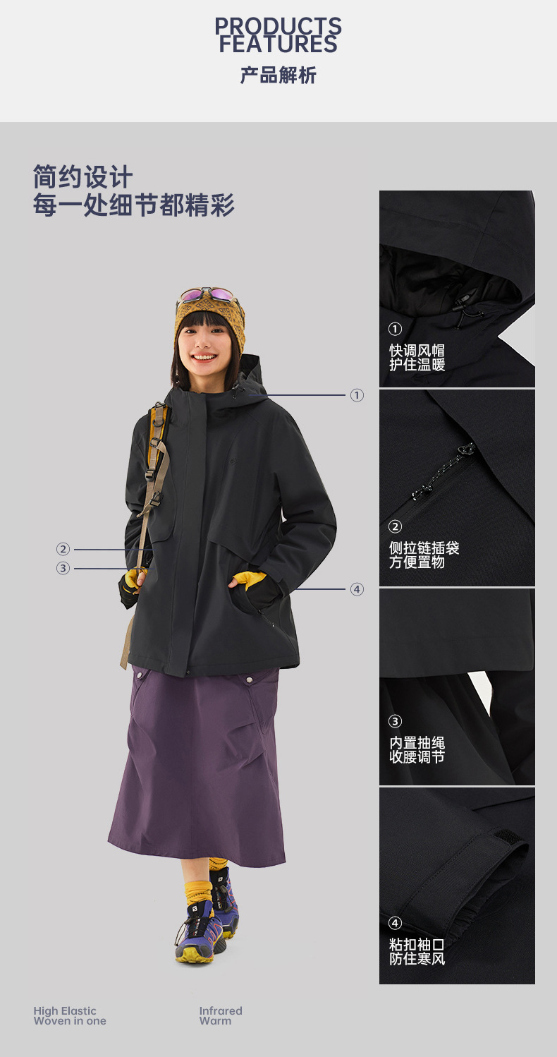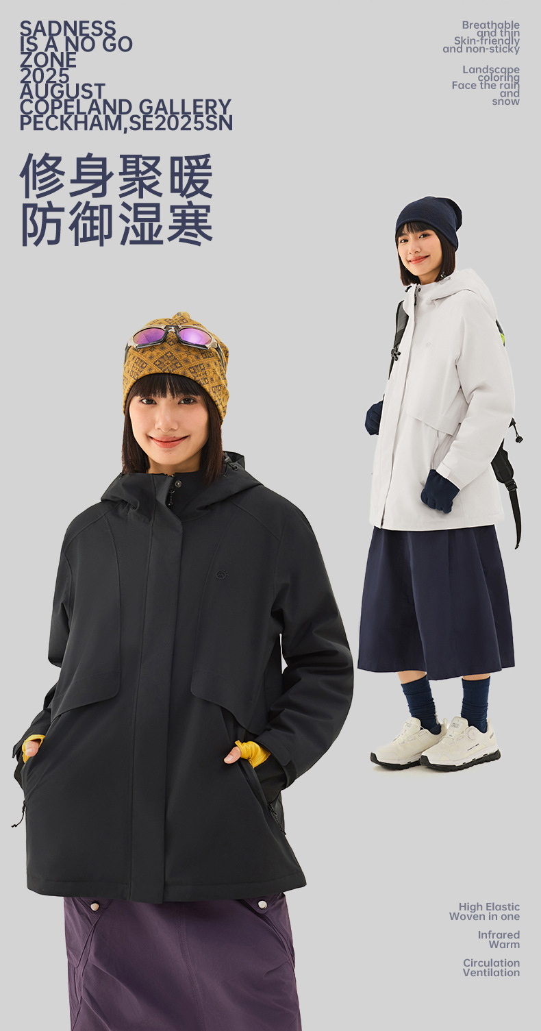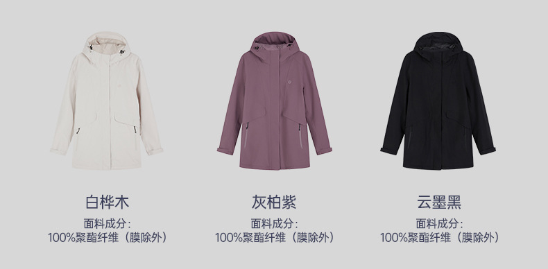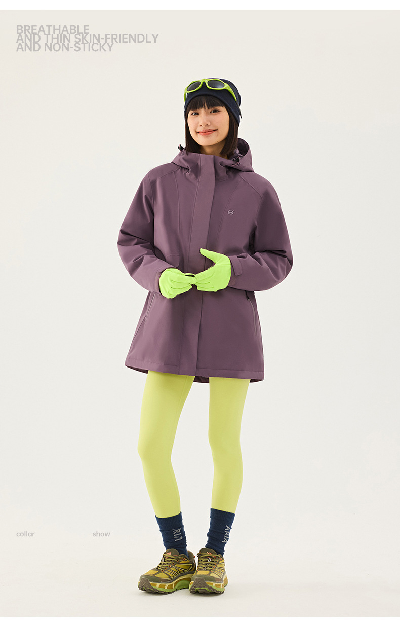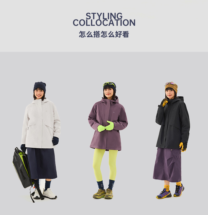 25秋冬探拓户外三合一冲锋衣女中长款收腰保暖防风防水徒步登山服
