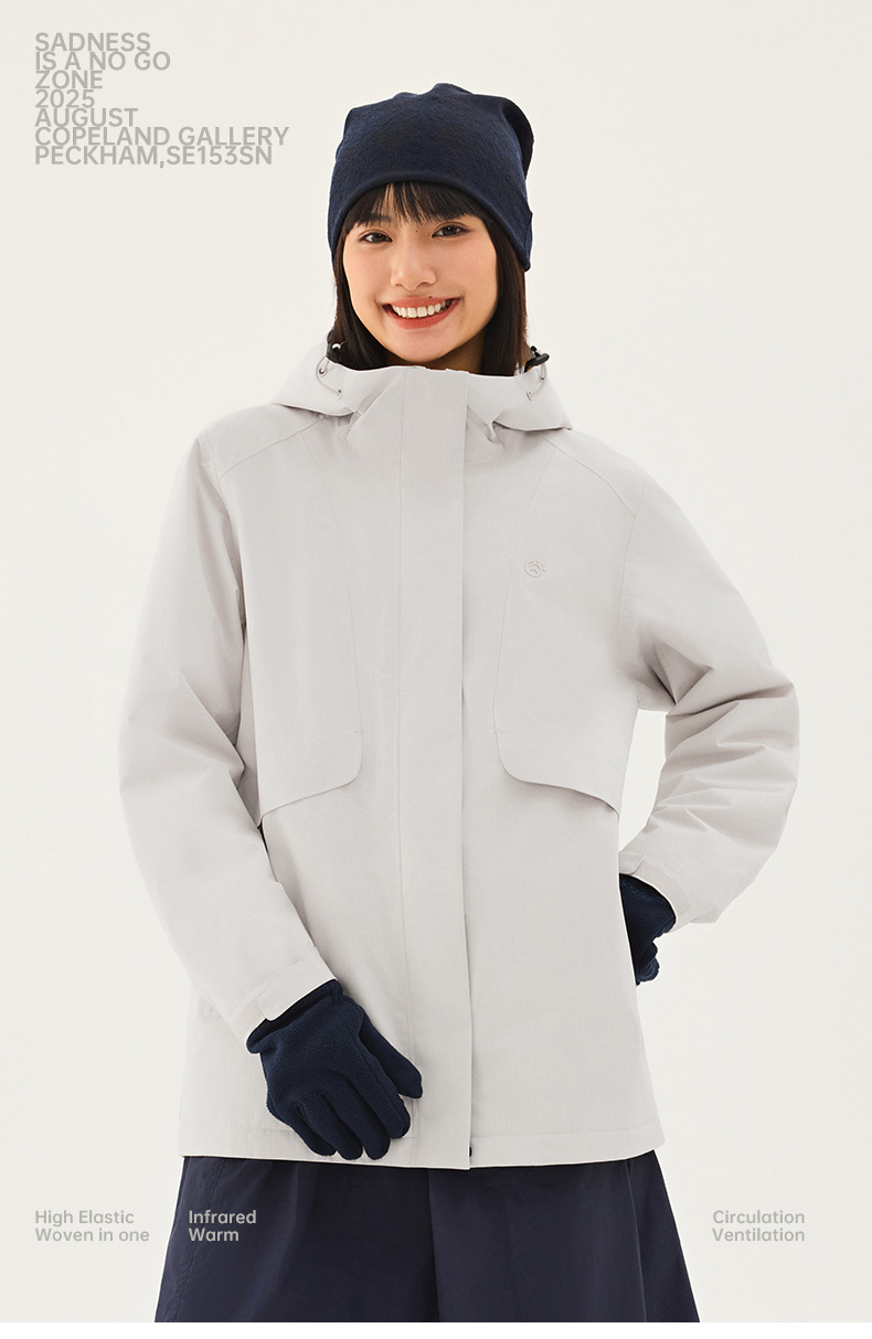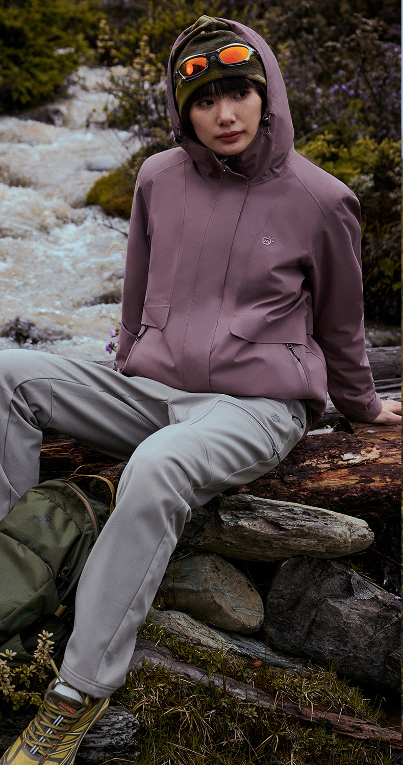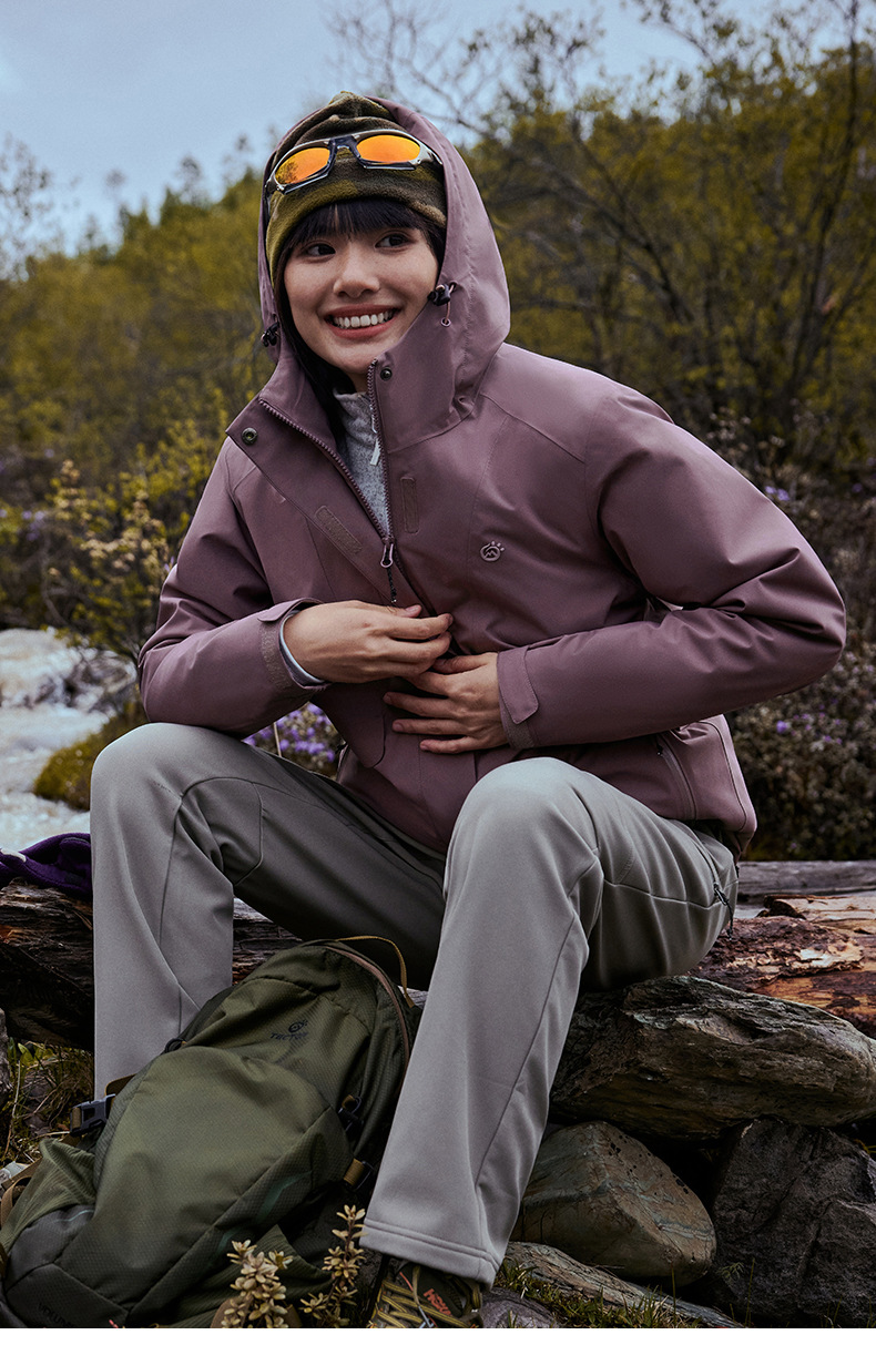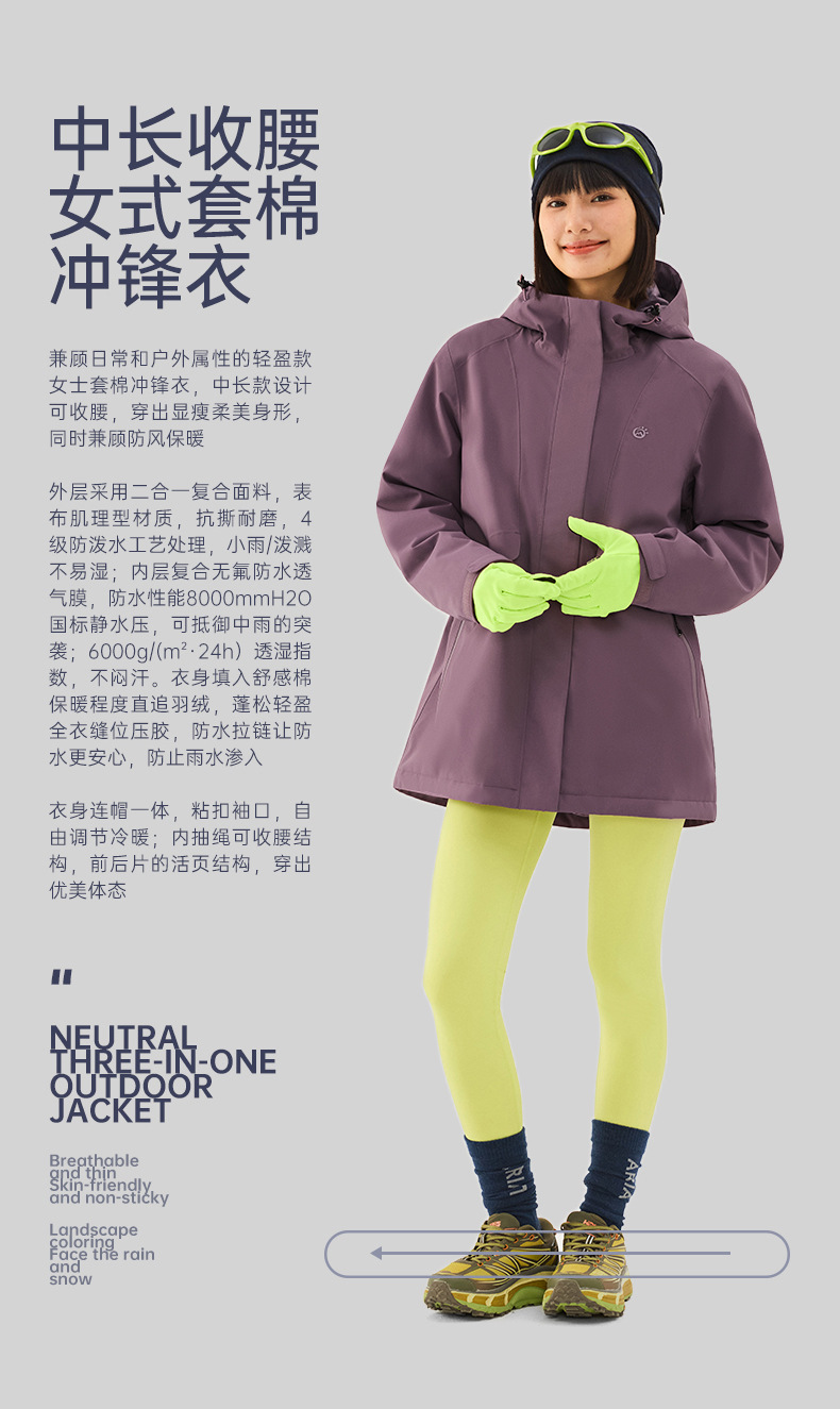 25秋冬探拓户外三合一冲锋衣女中长款收腰保暖防风防水徒步登山服