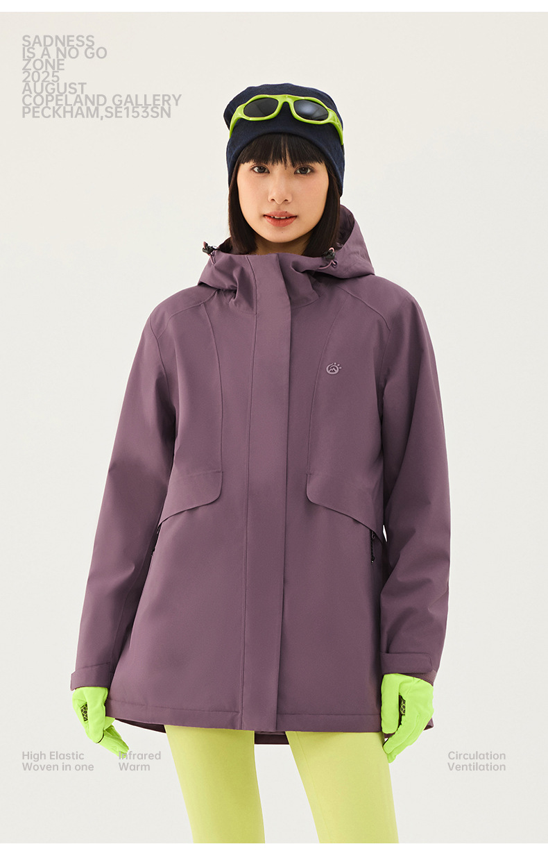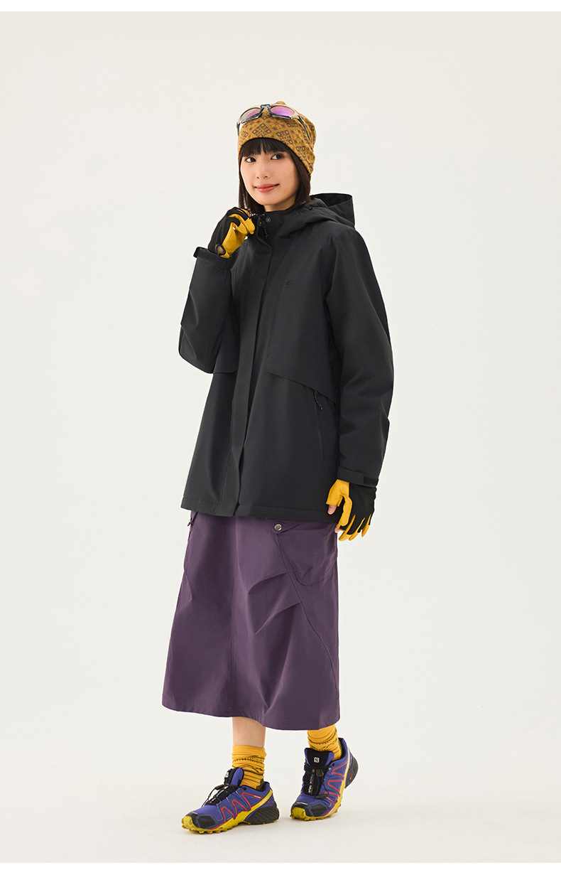 25秋冬探拓户外女士中长款收腰冲锋衣加绒保暖透气防风防水登山服