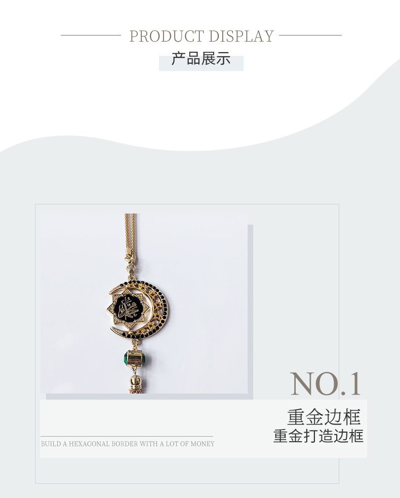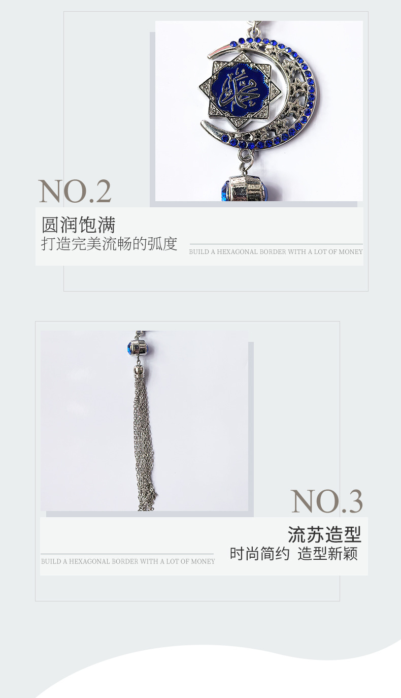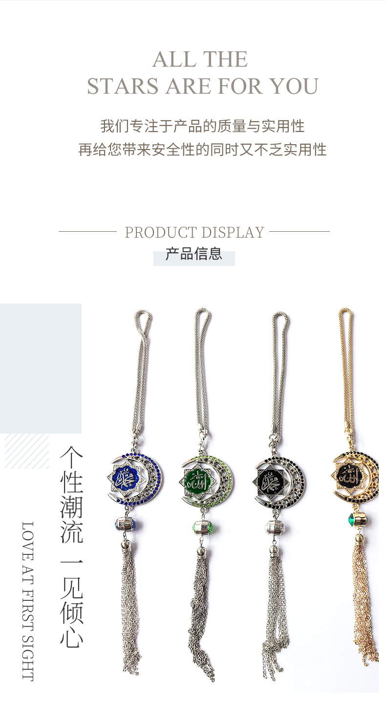 跨境直供阿拉伯中东风车载挂件车内饰品锌合金镀金月牙款汽车吊件