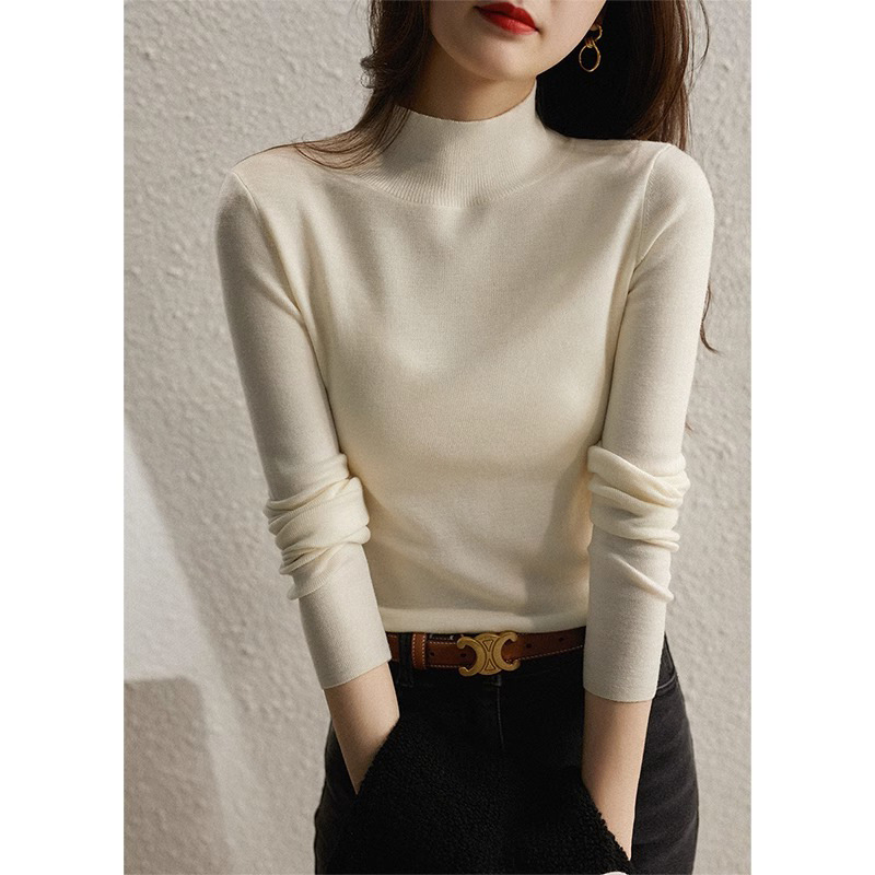 赤い半高襟の底のシャツの女性の秋冬の柔らかいモチモチのウールの復古のニットの修身の中襟のセーターの気質の上着