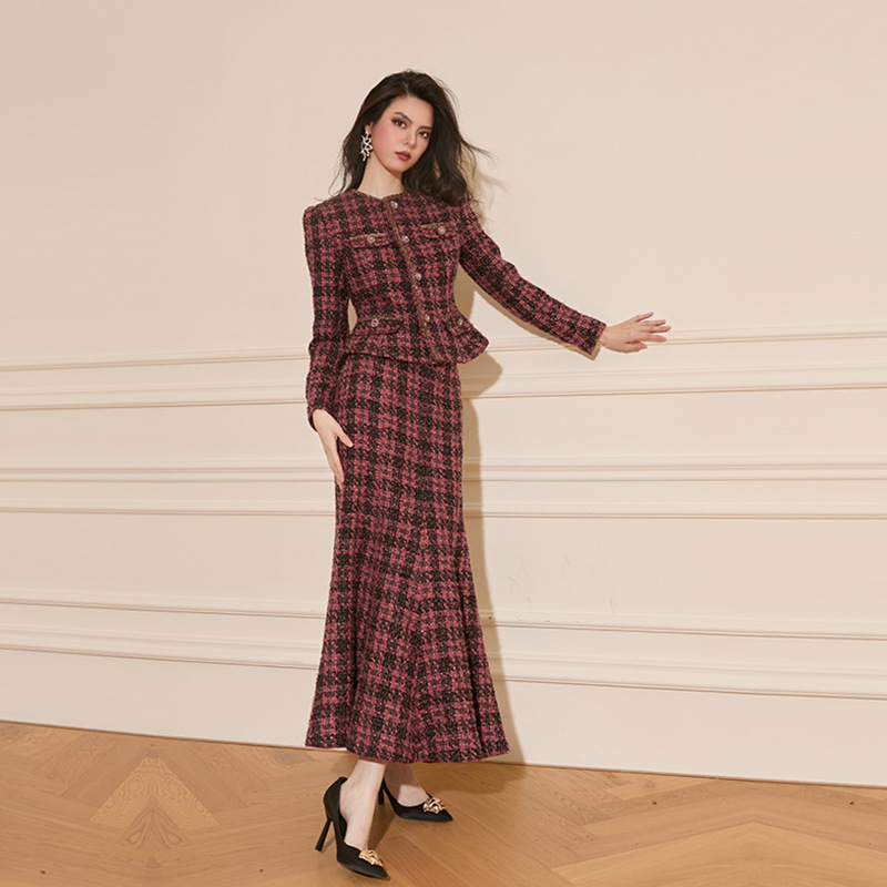 美ラードはツイードのコートを着ています。女性の秋は今年流行しています。