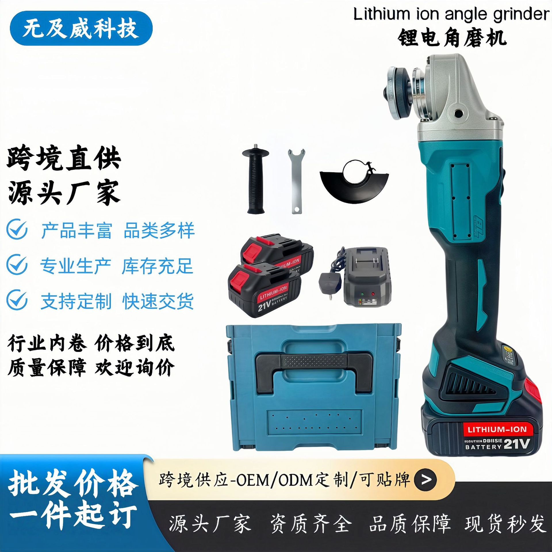 跨境牧田款角磨机无刷锂电切割机外贸工业级大功率角向磨光机