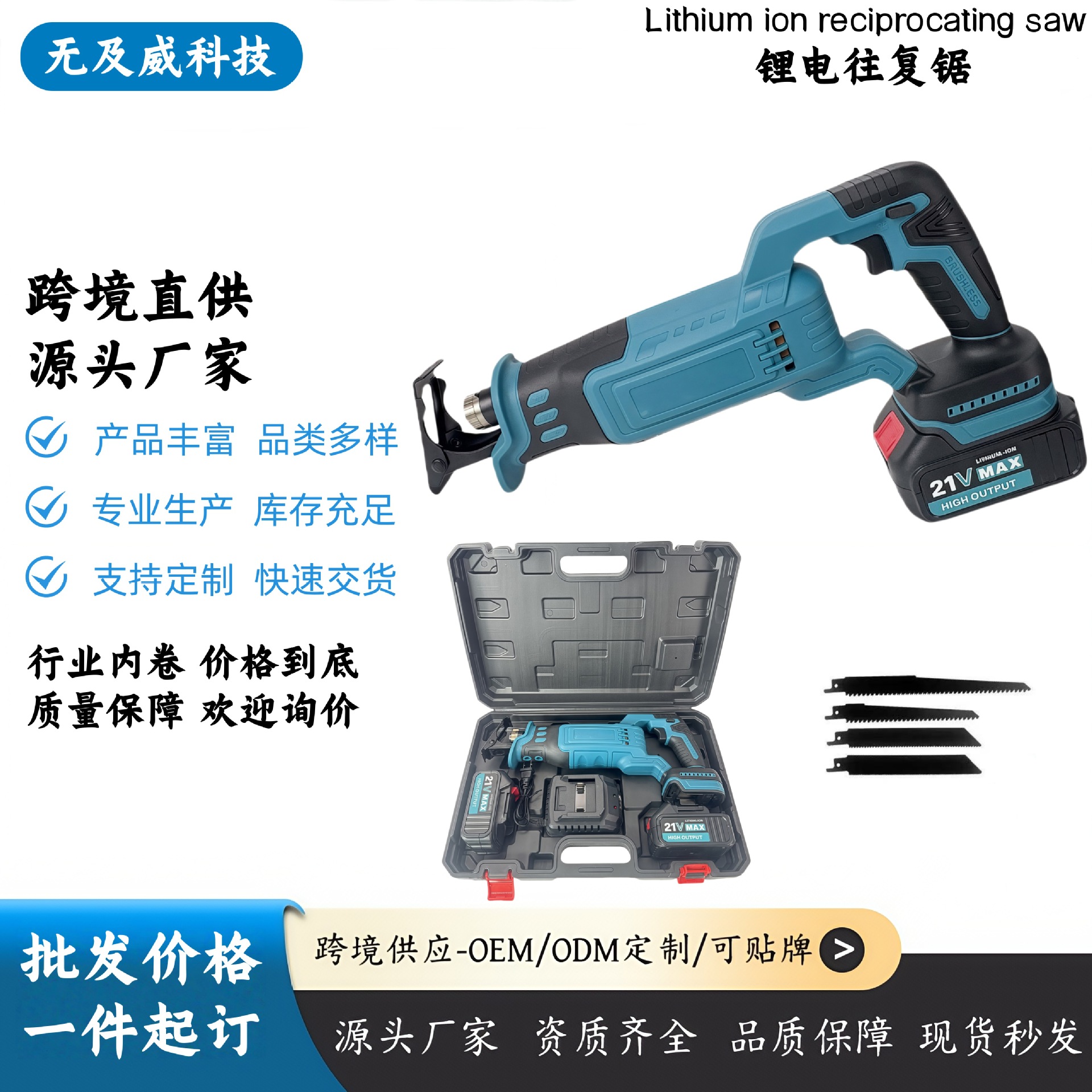 跨境无刷往复锯家用伐木锯便携式园林修枝批发供货电动工具马刀锯