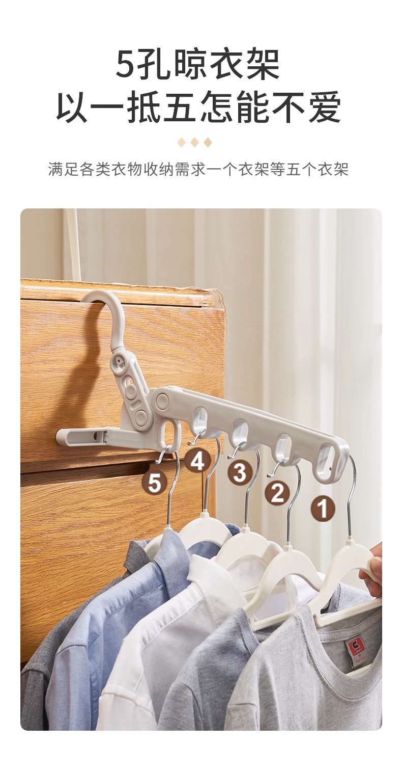折叠五孔晾衣架便携旅游酒店晾晒挂架出差必备晾衣多功能五孔衣架