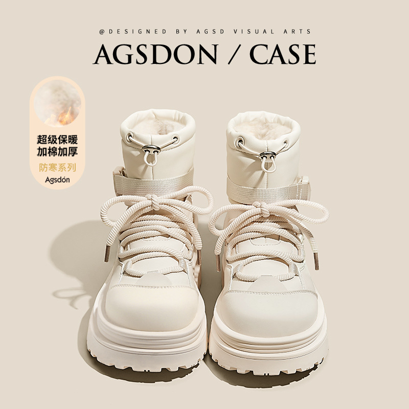 厚底白色雪地靴女2025新款冬季防水防滑马丁靴短靴加绒东北大棉鞋