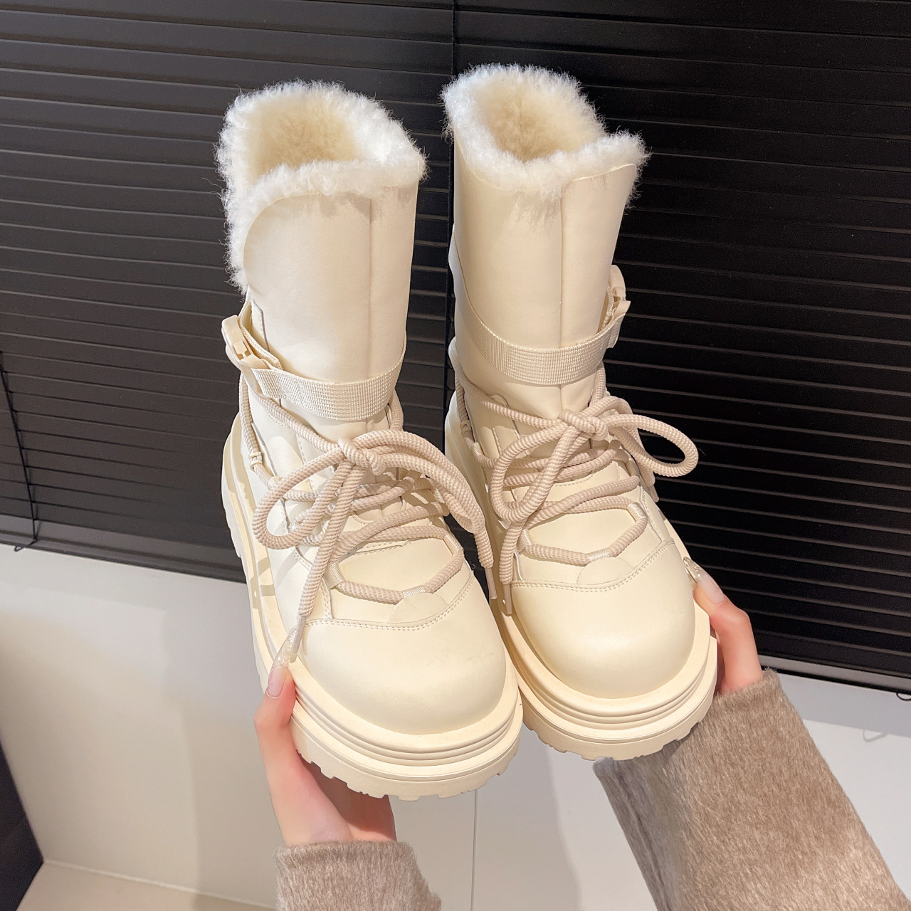 2025冬新款两穿中高筒雪地靴羊皮毛一体休闲加绒保暖厚底增高长靴