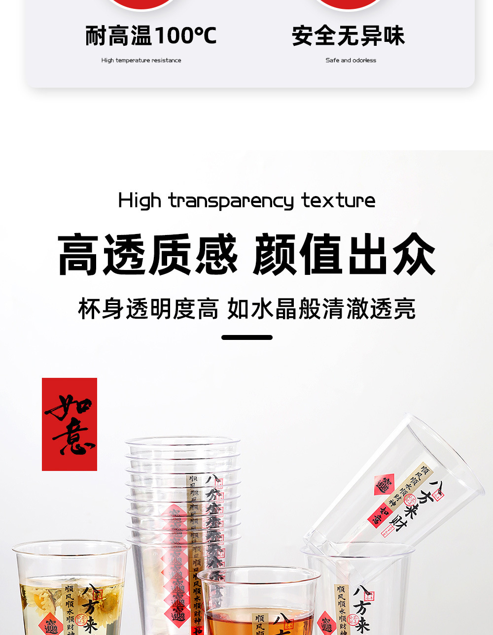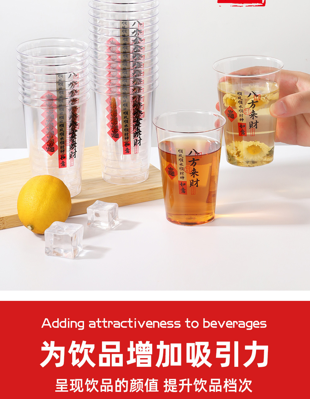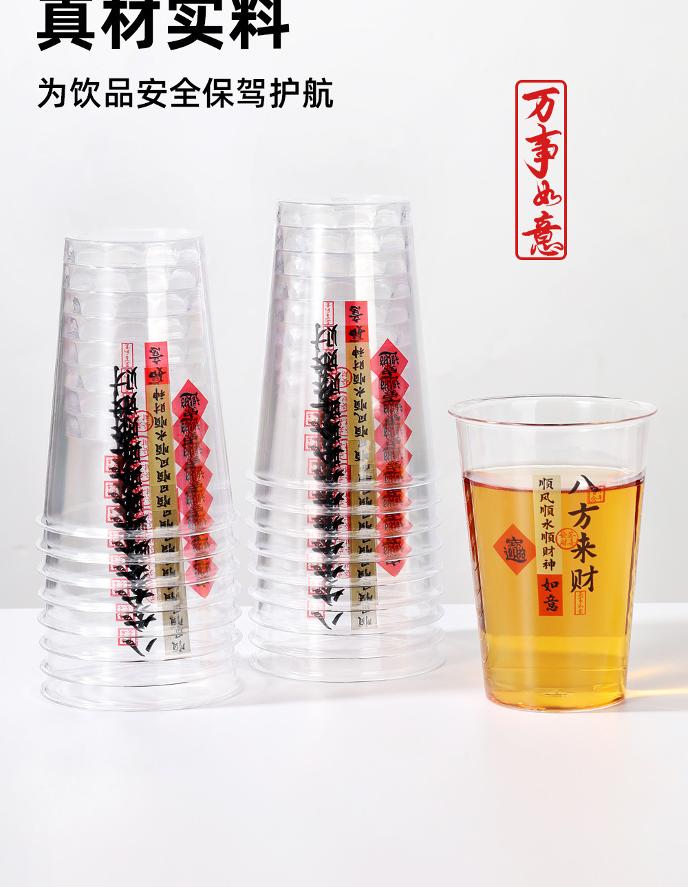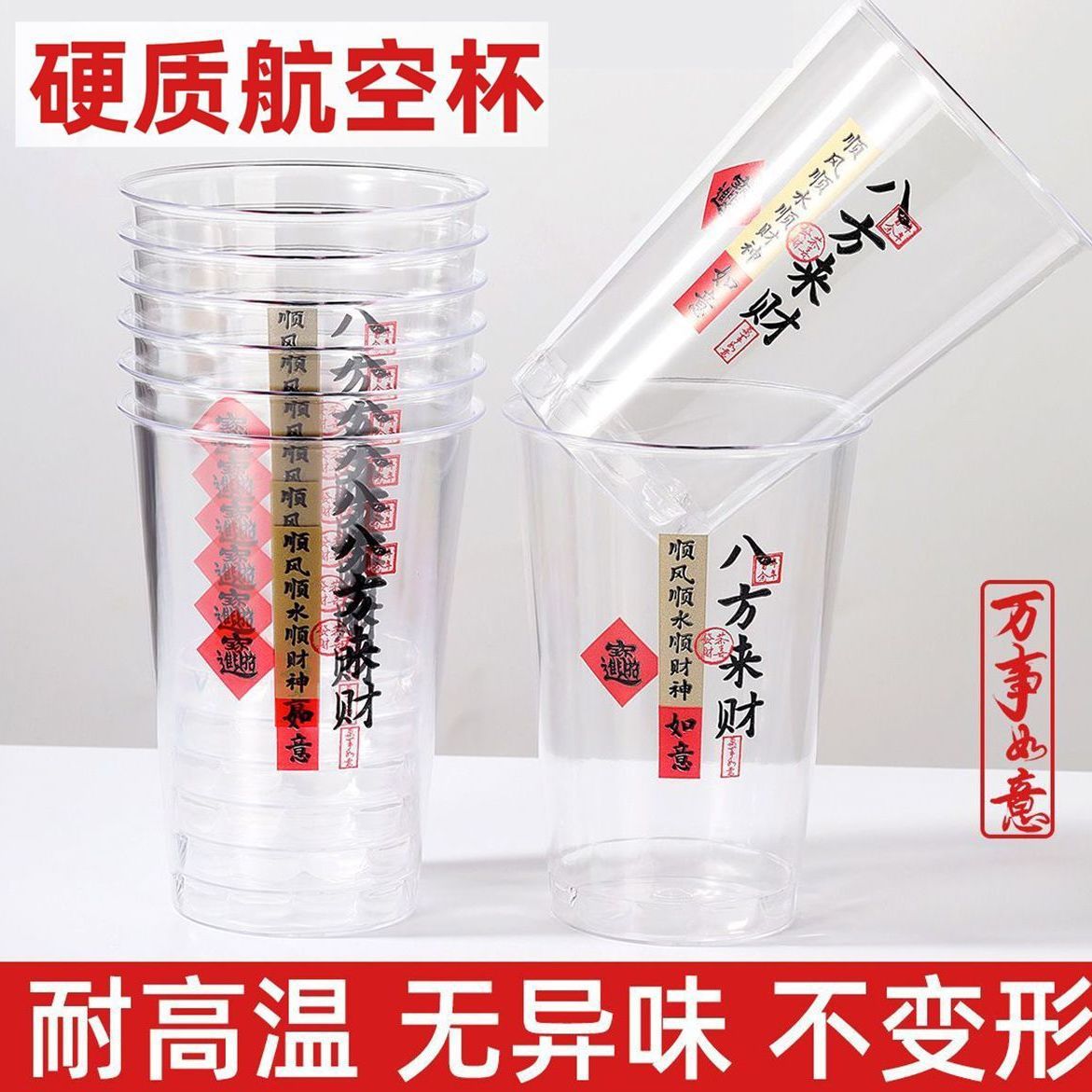 八方来财】一次性吉祥航空杯子加厚透明茶水杯招待杯喝酒饮料杯子