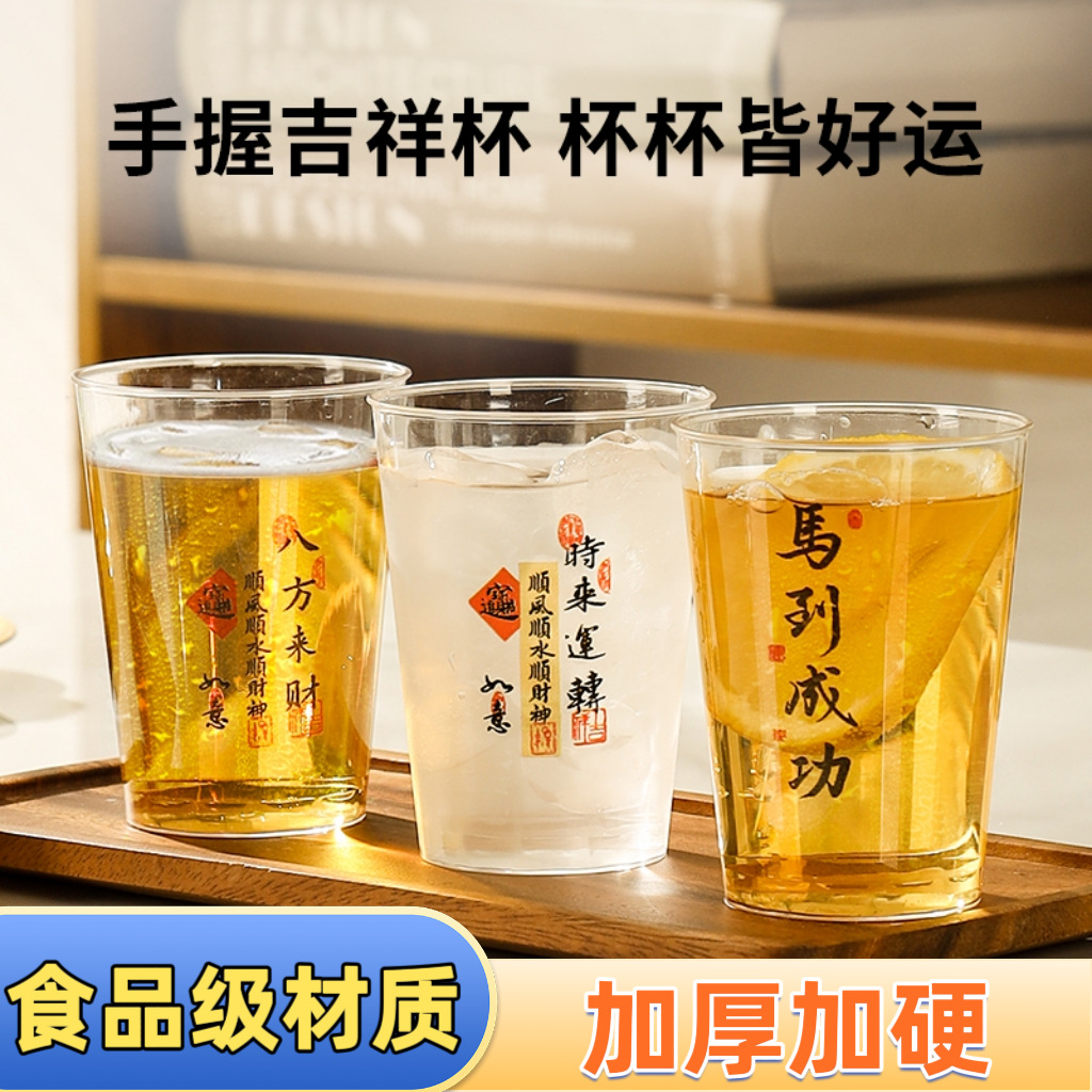 新款航空杯一次性硬塑耐高温家用饭店酒吧啤酒杯马到成功水杯茶杯