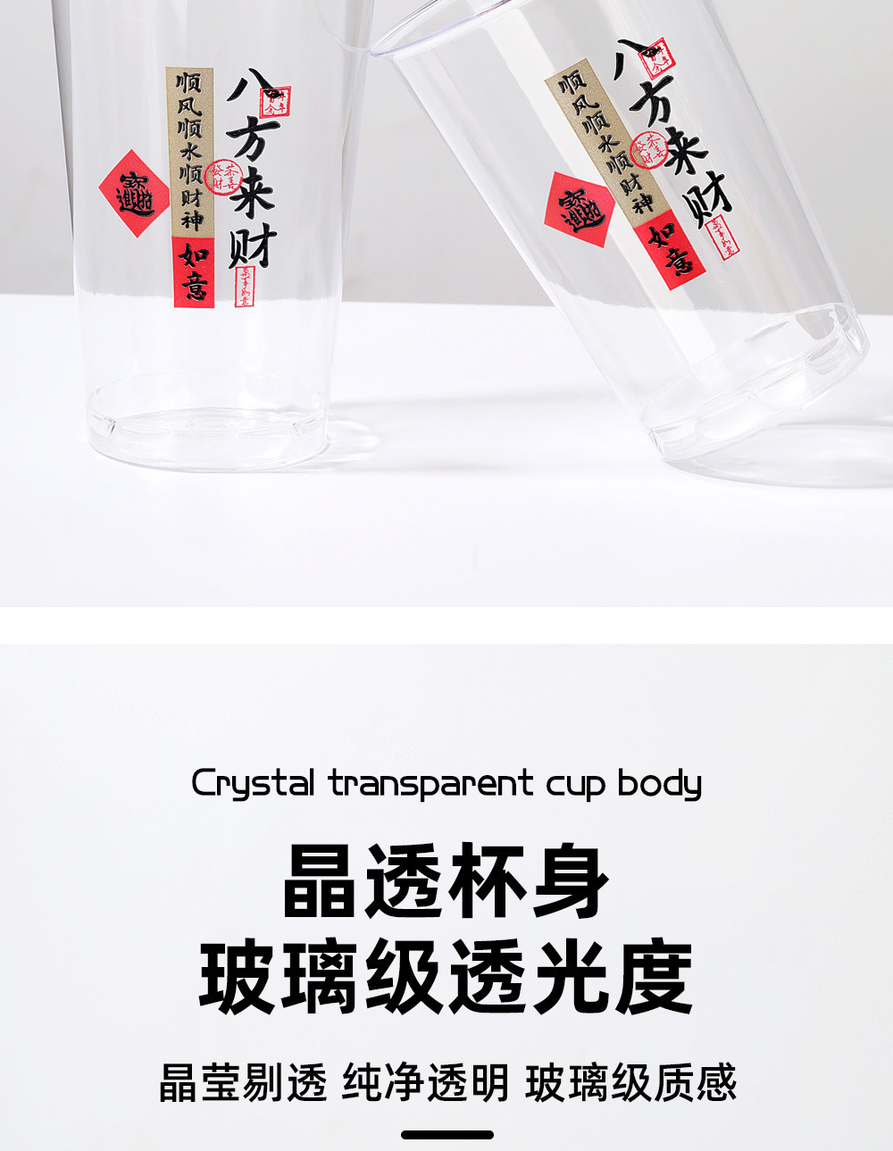 一次性食品级材质八方来财航空杯高档透明接待硬质水杯