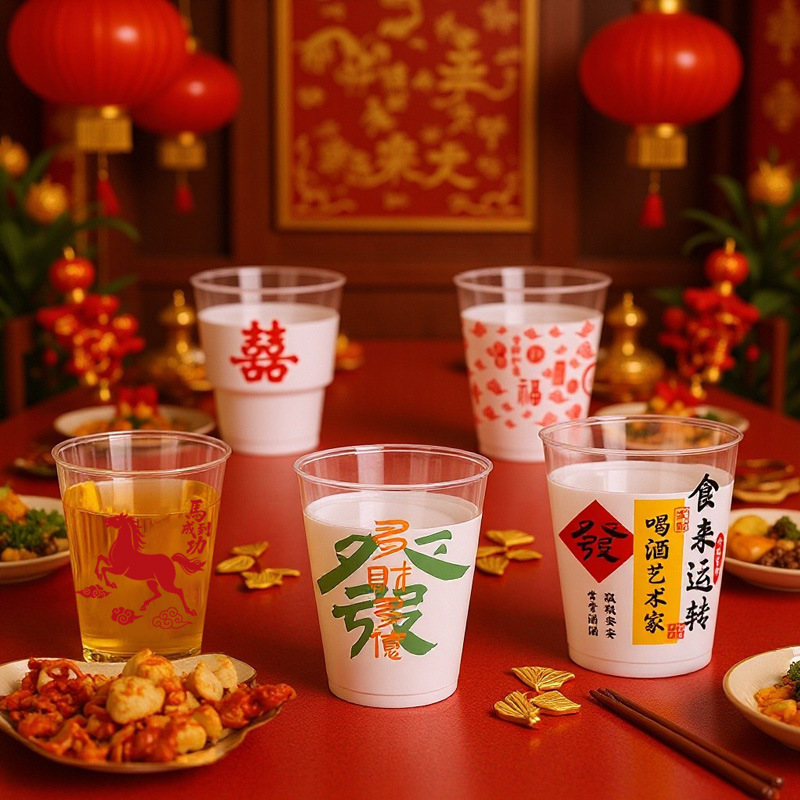 【八方来财】马年一次性水杯航空杯喜庆加厚耐高温家用宴席饮水杯