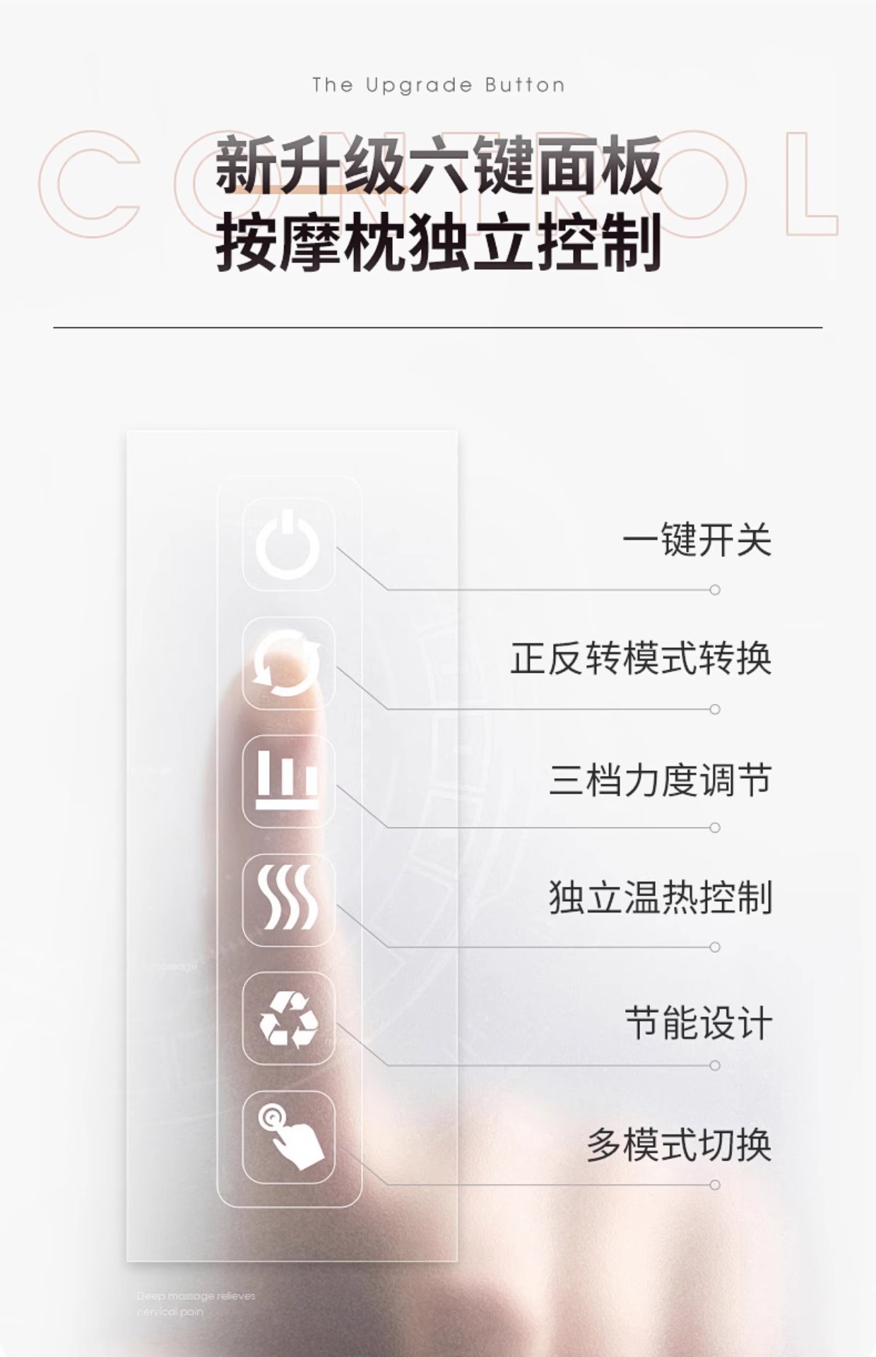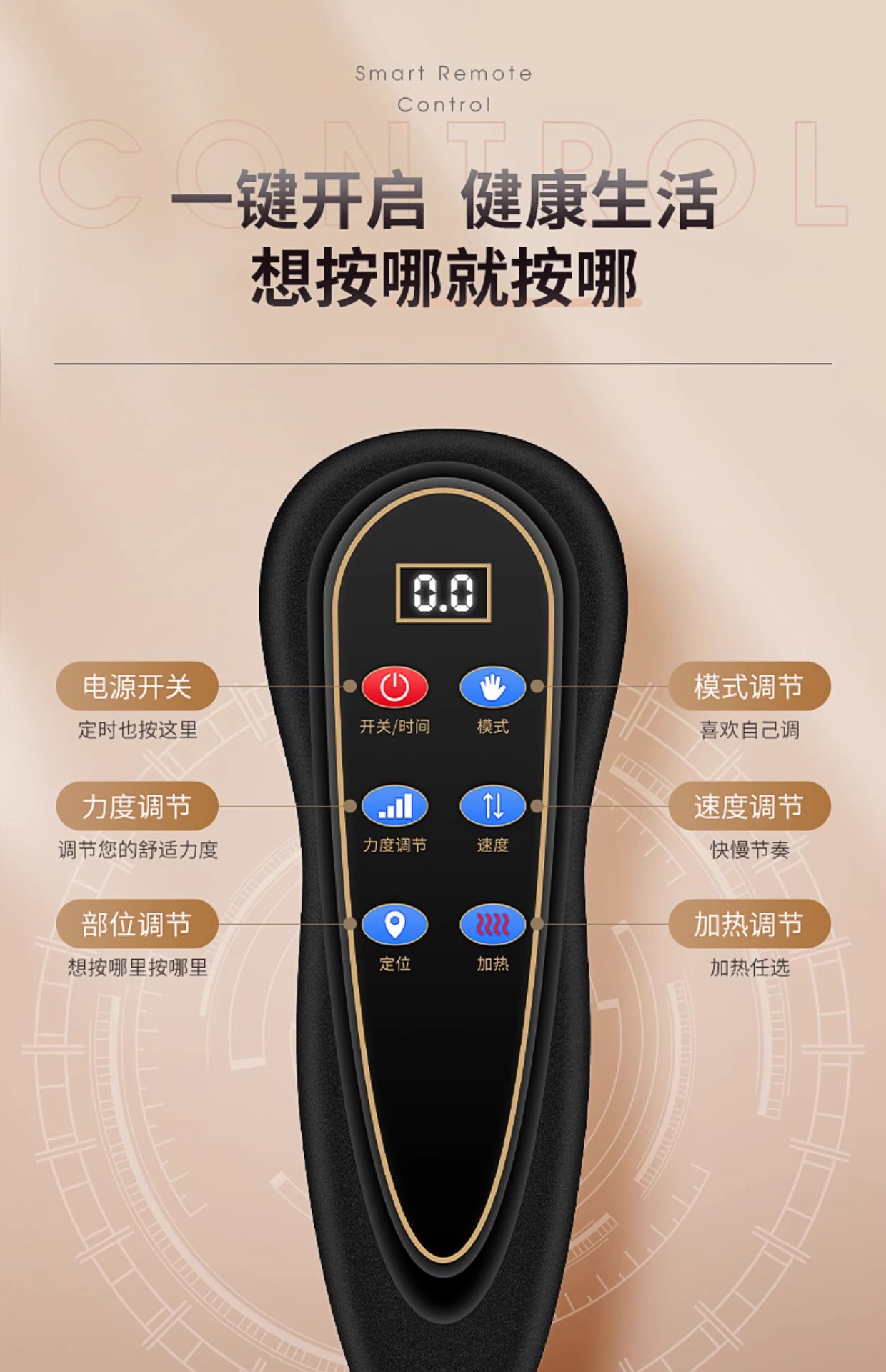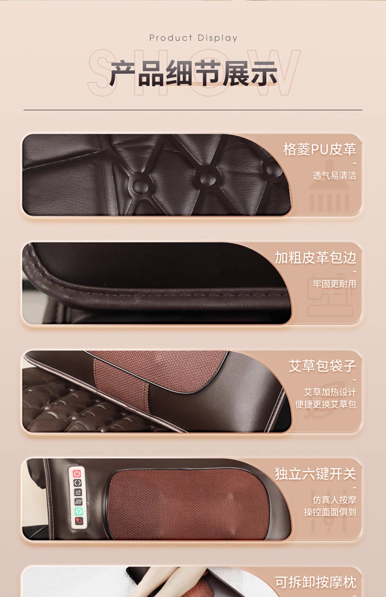 规格 【入门款-绒】7组震动+腰部加热,6键控制+10电机+震动+腰部热敷】,6键控制+10电机+震动+腰部热敷+药枕头】,高配款【绒布】6键控制+10电机+震动+药枕+腿部+腰部热敷】,高配款【皮革】6键控制+10电机+震动+药枕+腿部+腰部热敷】,顶配款【皮质】6键控制+10电机+震动+药枕+腿部+腰部热敷升级双电机腿部/腰部按摩组合