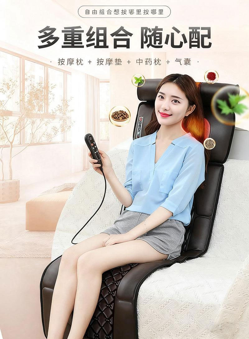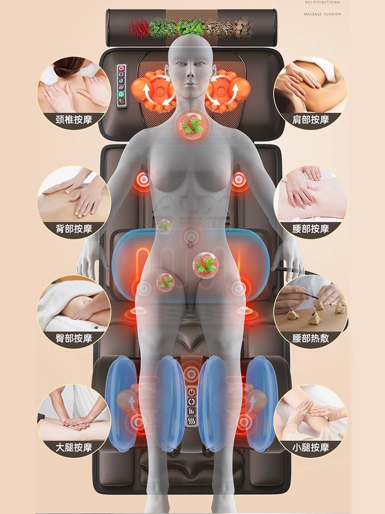 源头工厂家用智能气囊按摩床垫全身颈肩揉捏电动靠垫恒温热敷定时