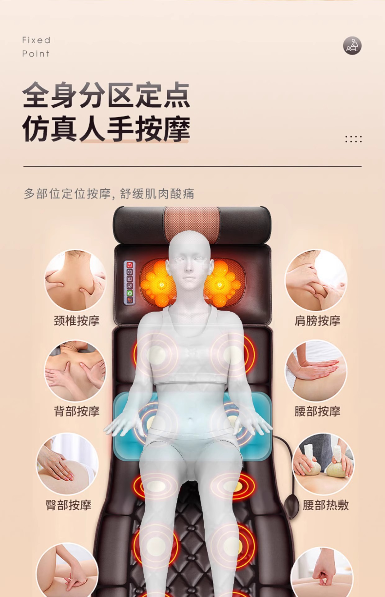 跨境颈椎部腰部电动多功能折叠揉捏家用massager按摩床垫按摩垫