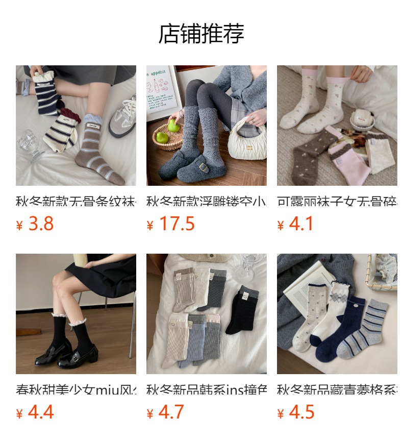韩系氛围组无骨袜子女碎花蝴堆堆袜复古中筒袜千金感学院风袜子