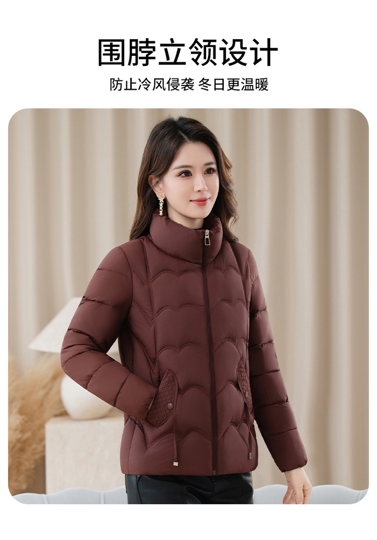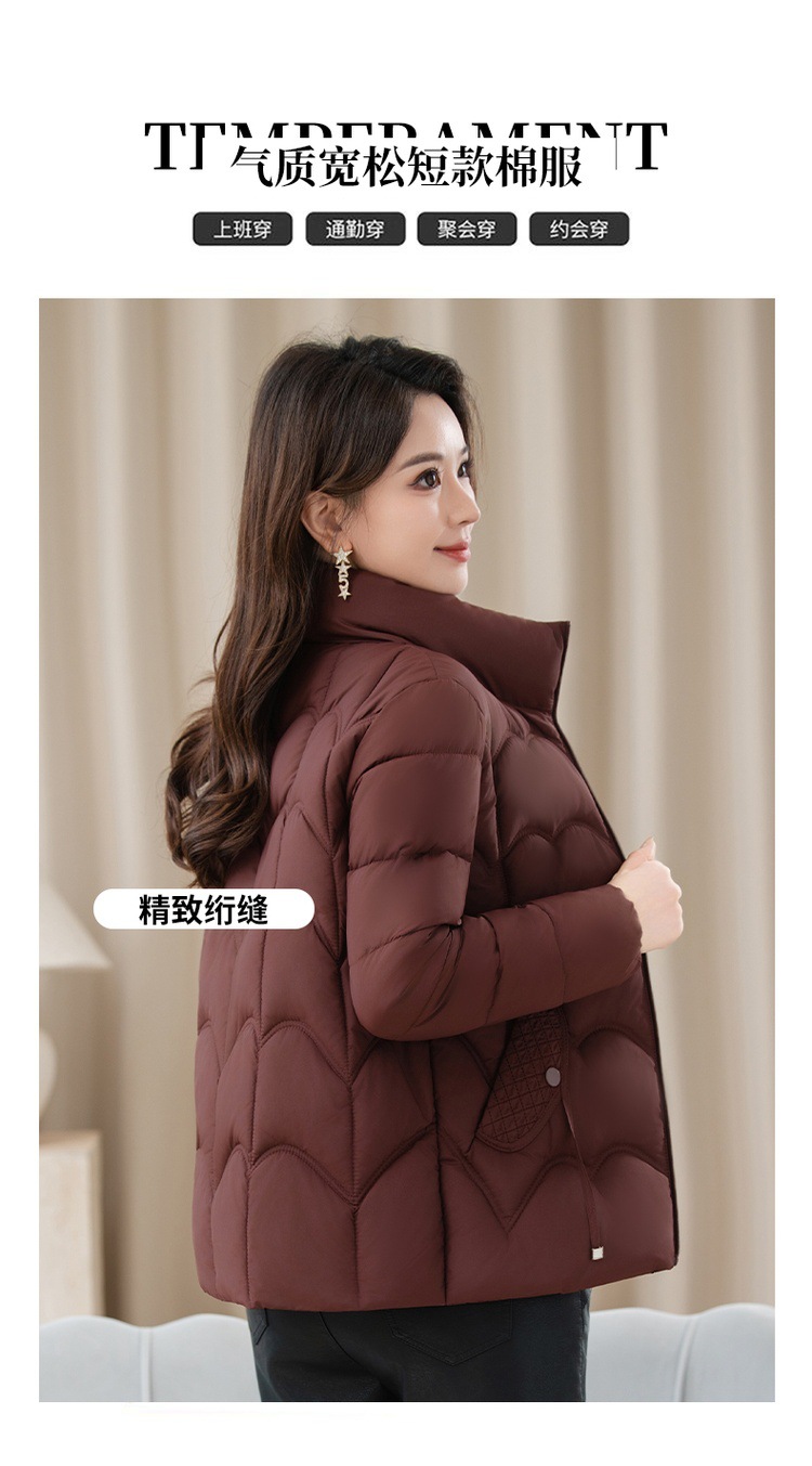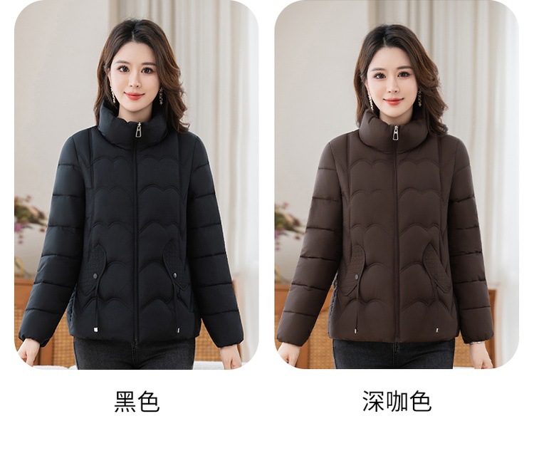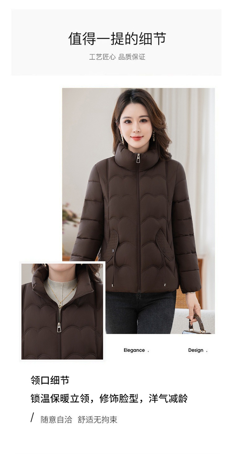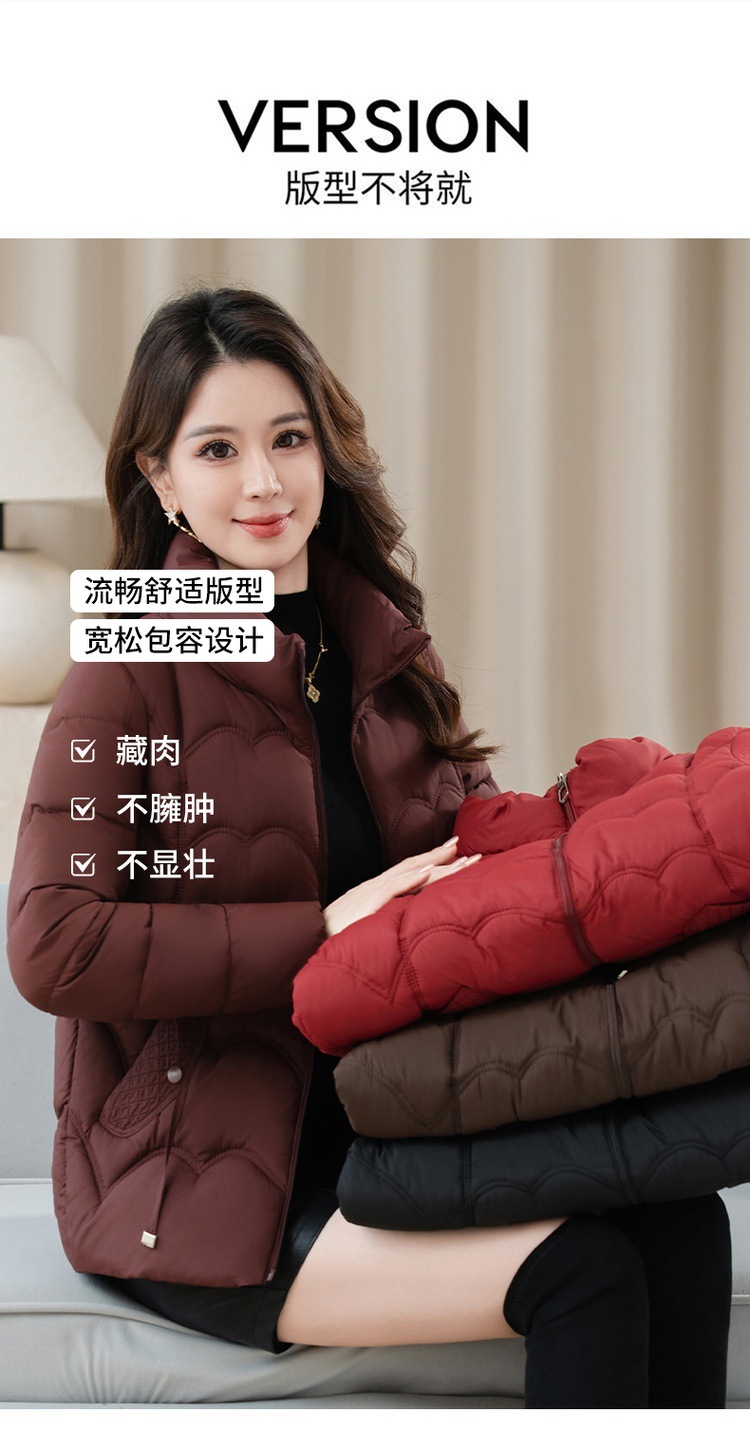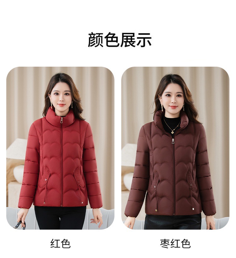 纯色翻领中年棉衣羽绒棉服外套女秋冬妈妈女士轻薄小棉袄短款通勤