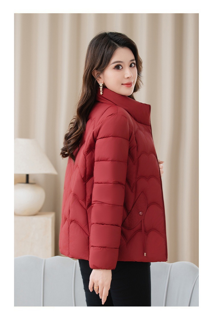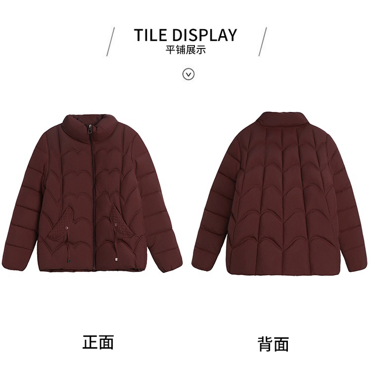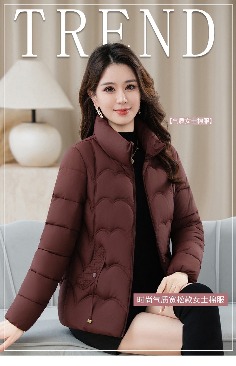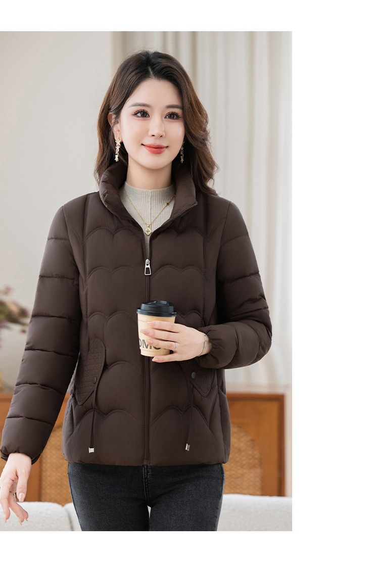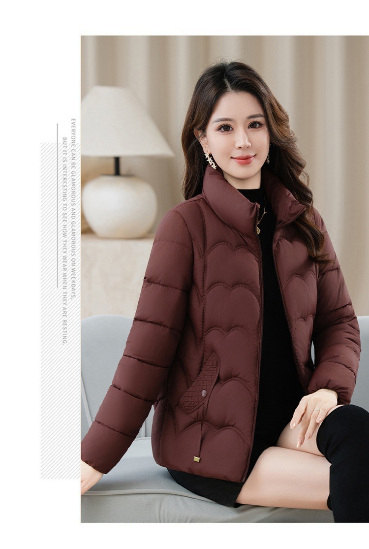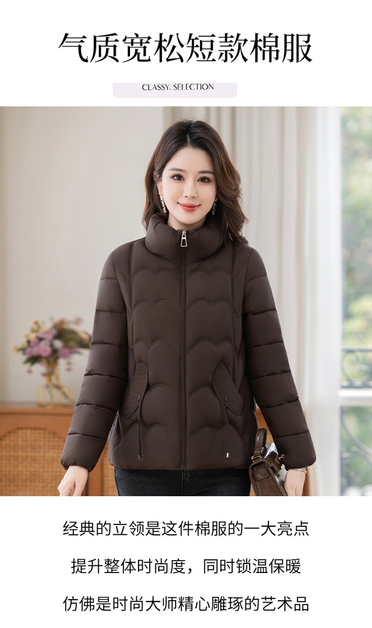 纯色翻领中年棉衣羽绒棉服外套女秋冬妈妈女士轻薄小棉袄短款通勤