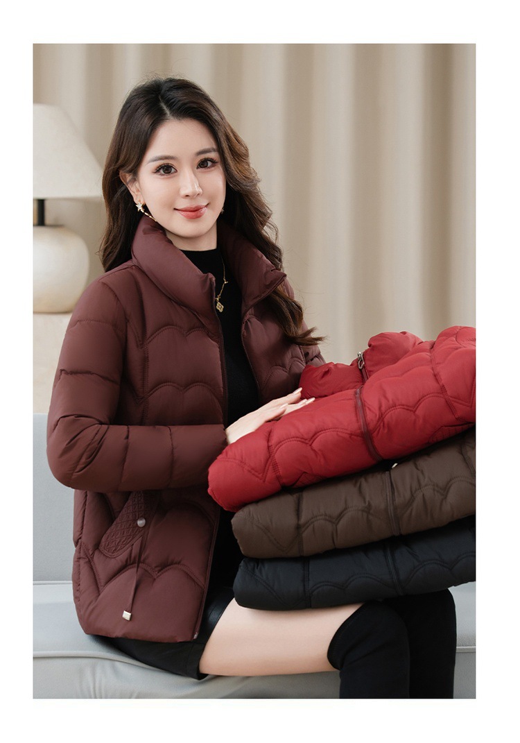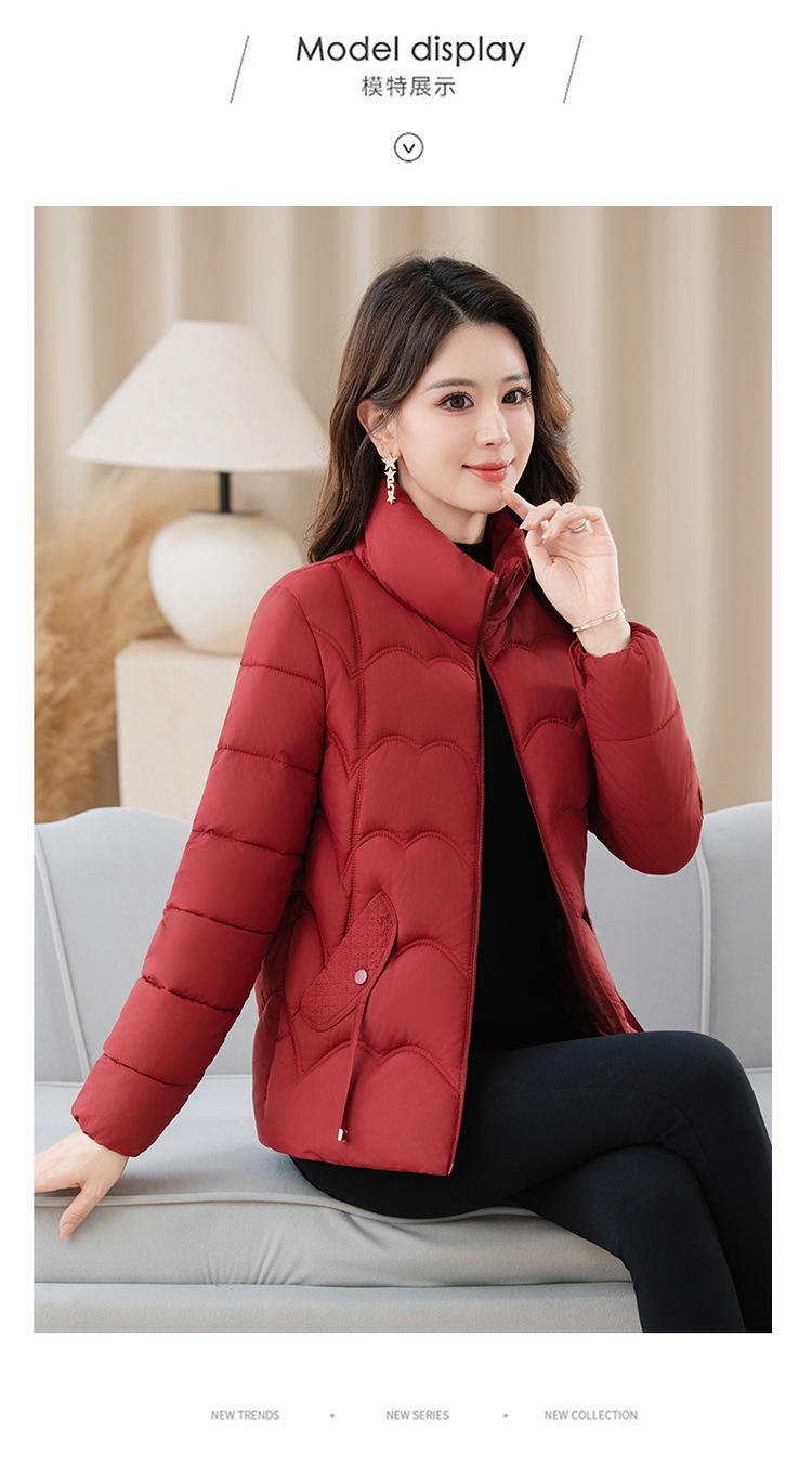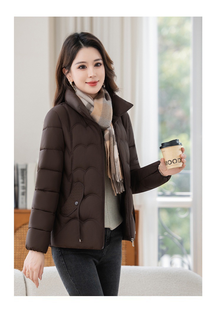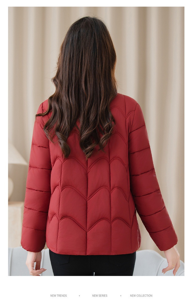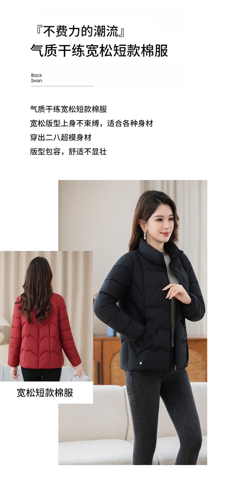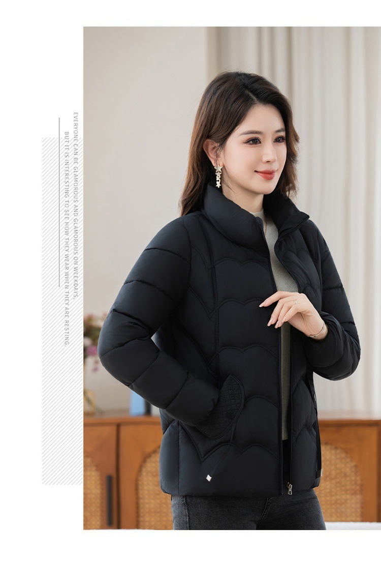 纯色翻领中年棉衣羽绒棉服外套女秋冬妈妈女士轻薄小棉袄短款通勤