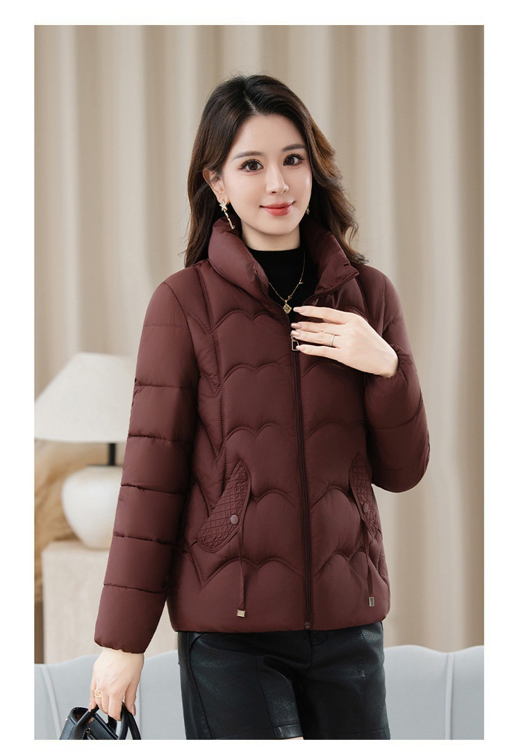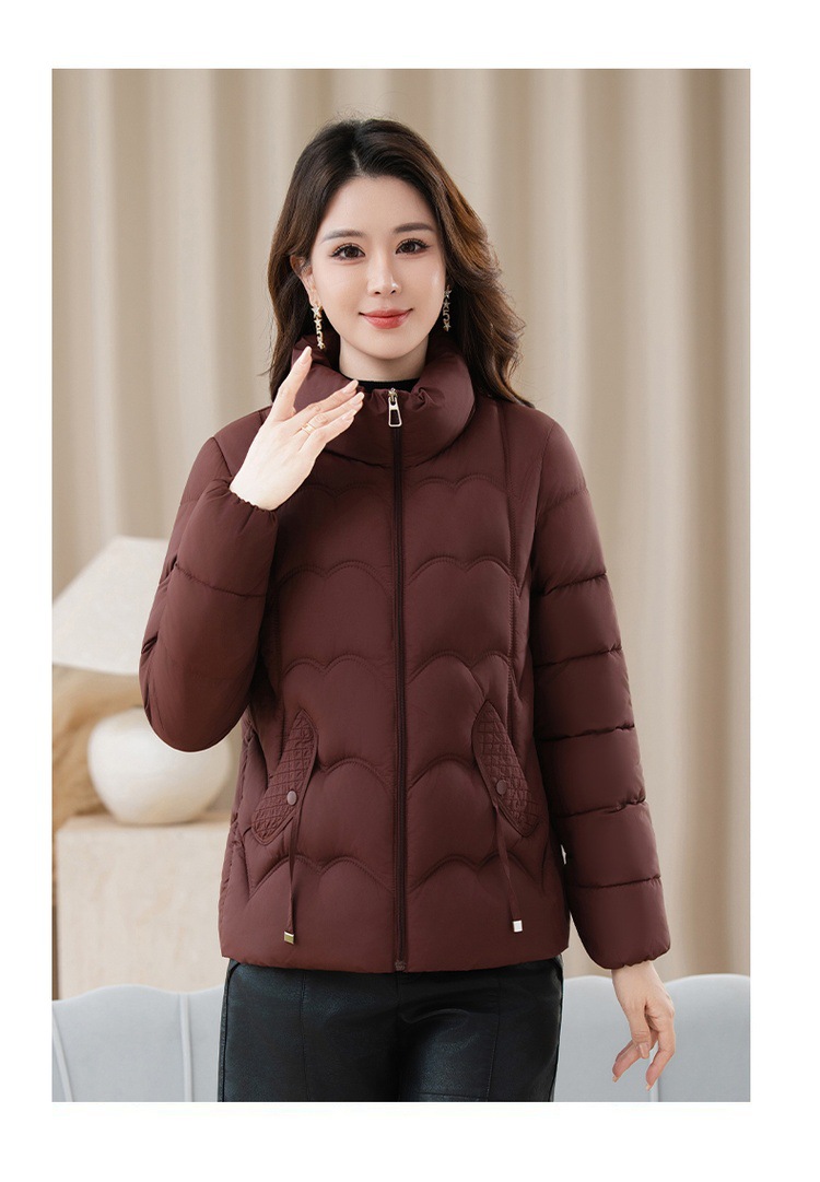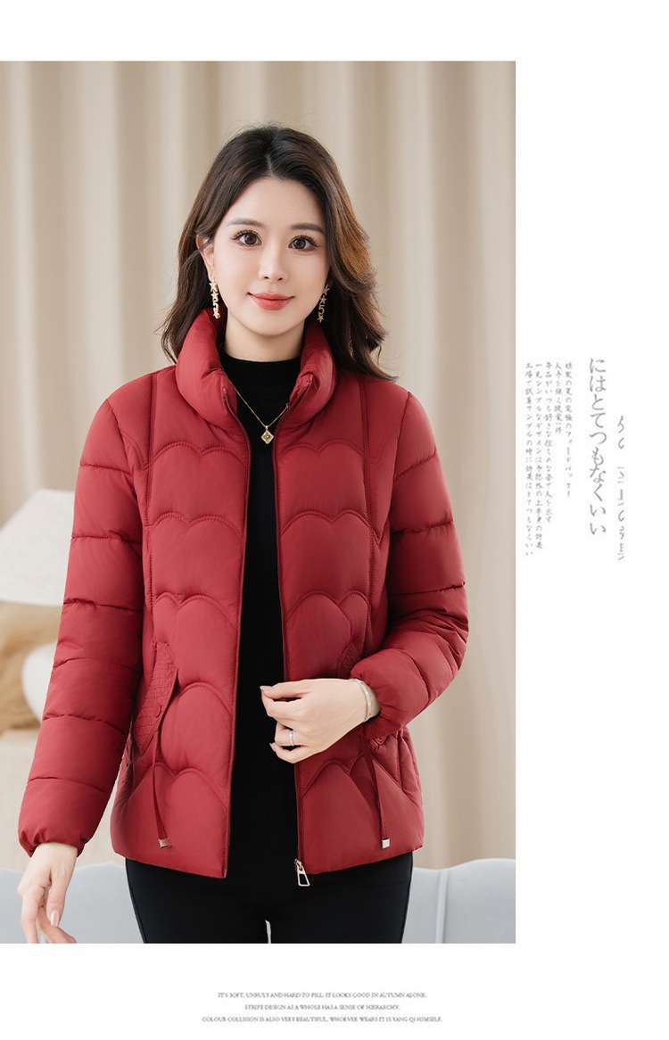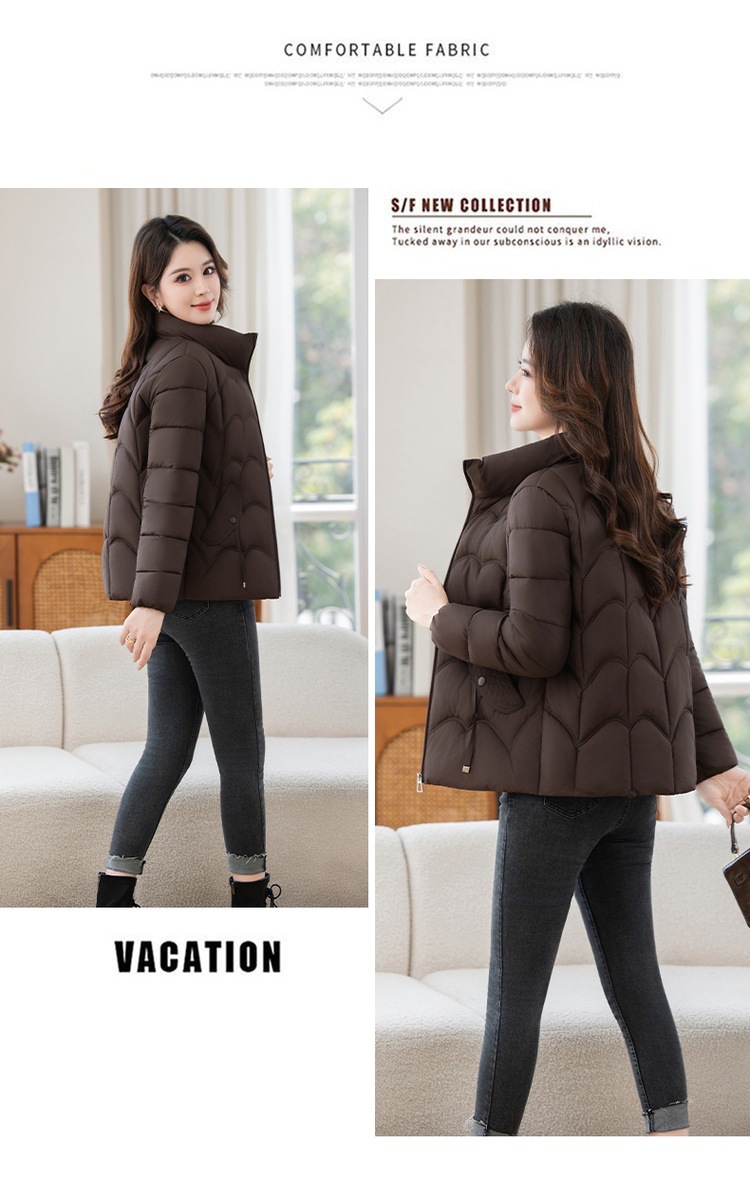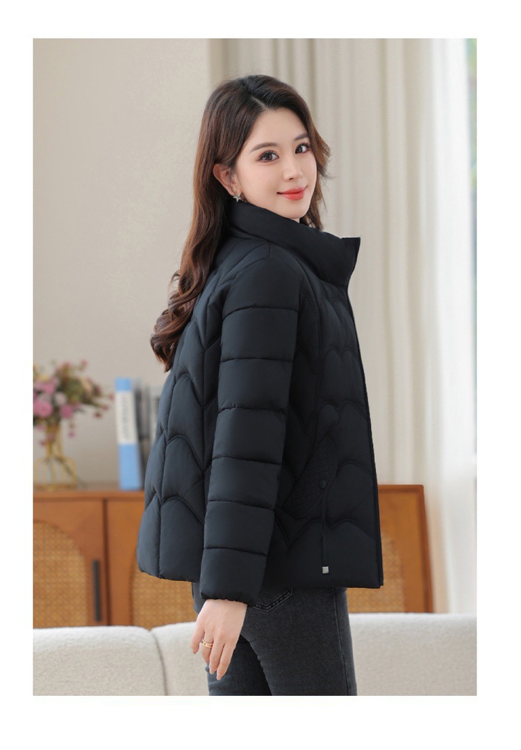 冬用厚手コート、ショート丈中年女性向けスタンドカラー中綿ジャケット、冬用ママ向け防寒コート、流行の防寒着