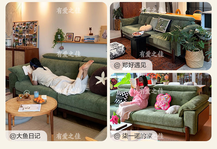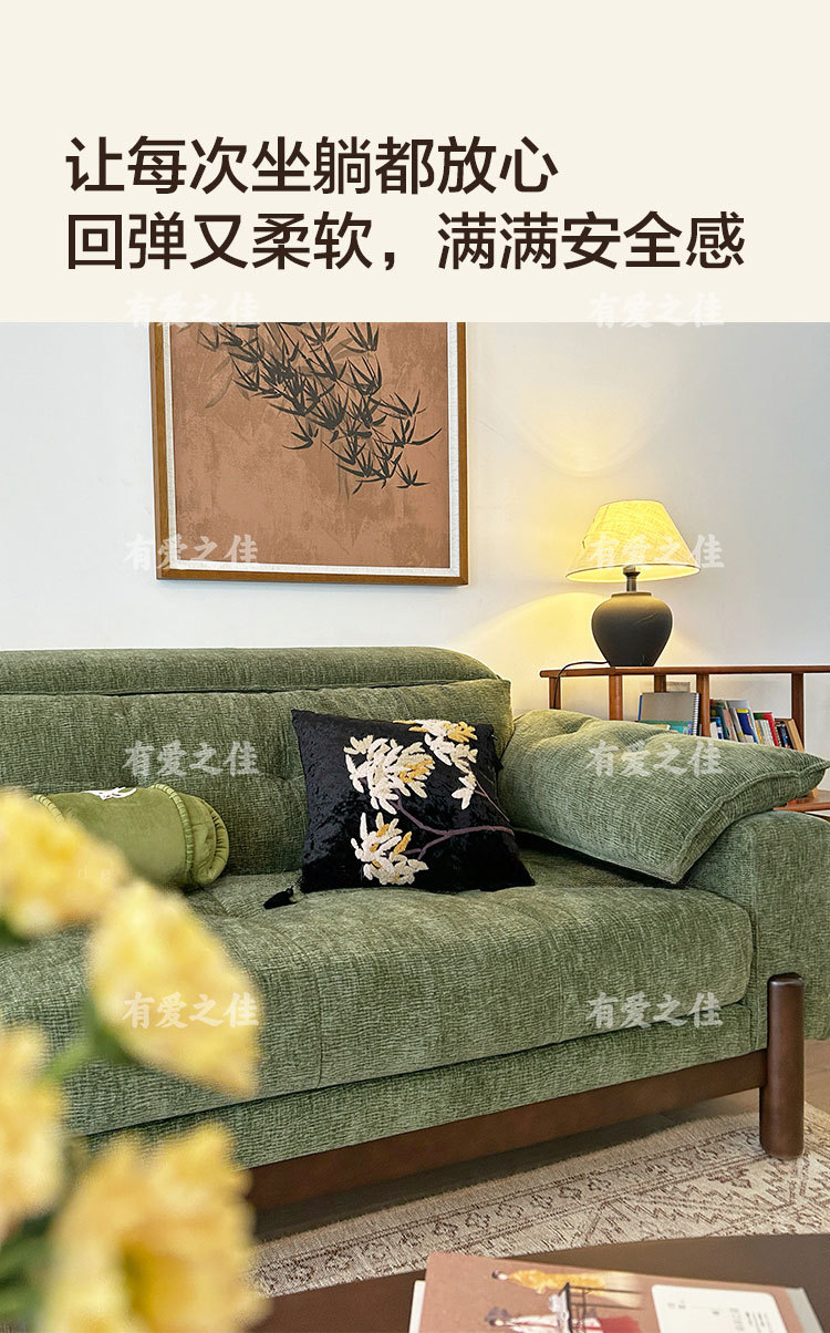 佛山2025年新款雪尼尔沙发爆款中古风绿色沙发客厅现代简约可拆洗