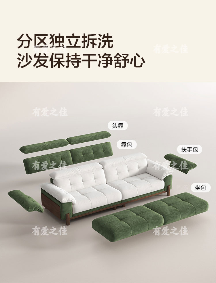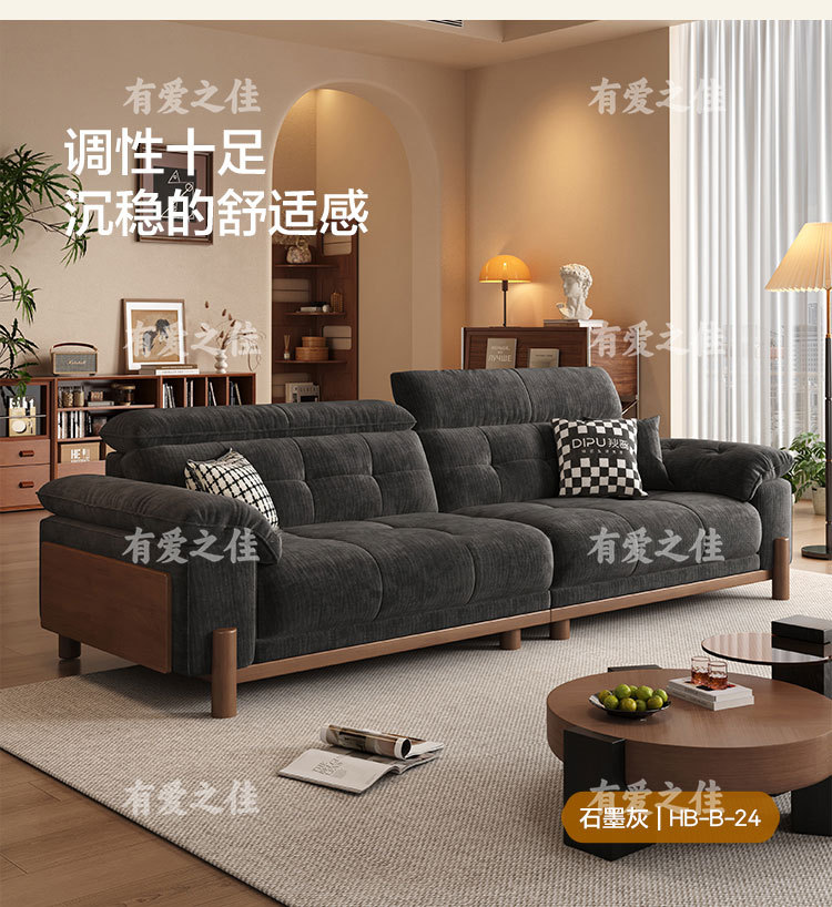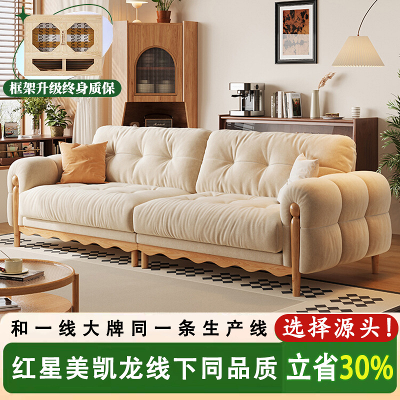 佛山实木中古风客厅模块布艺沙发双人小户型奶油风雪尼尔云朵沙发