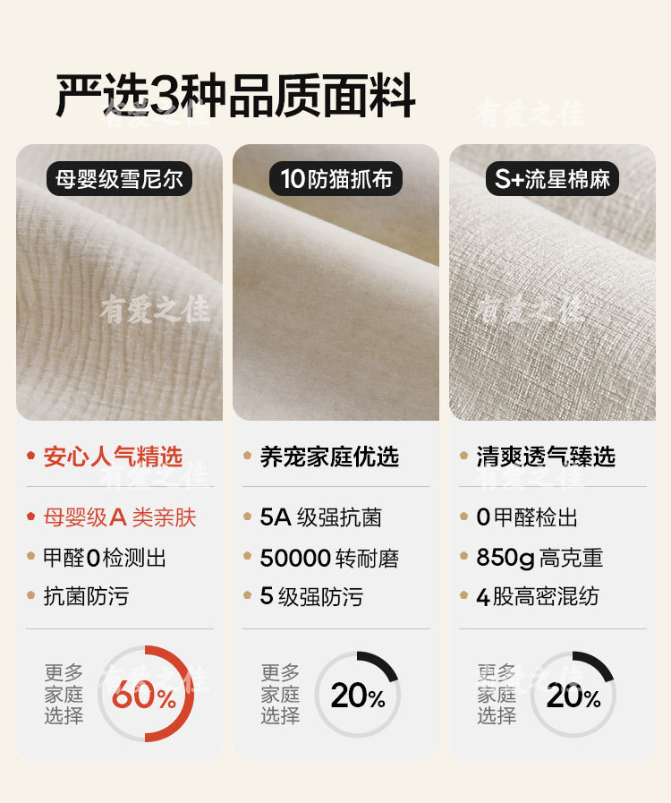 尺寸 【猫抓布 | 5A级10防抗菌】,【雪尼尔 | 亲肤母婴级A类】,【流星棉麻 | S级透气棉麻布】