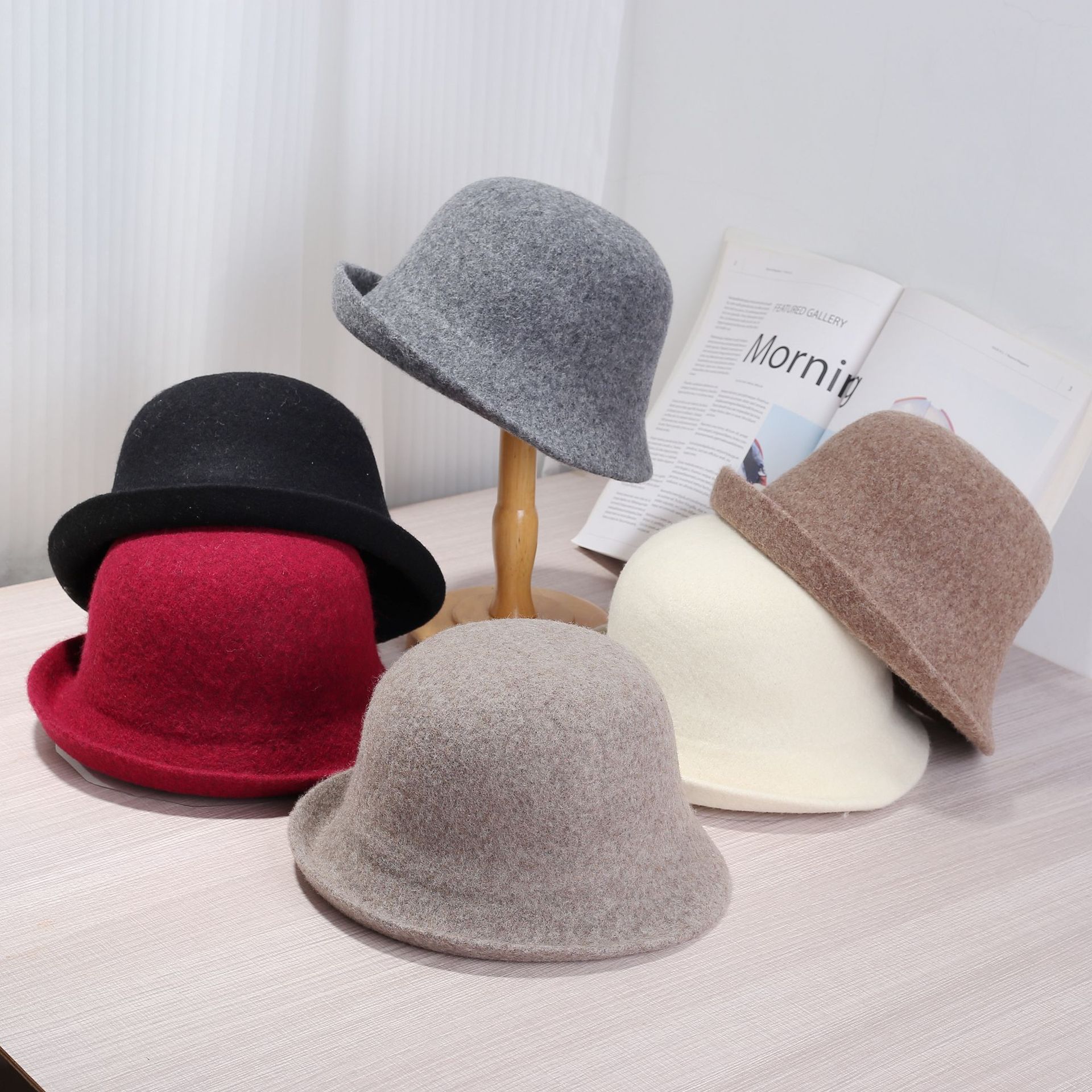 「极简系列」赫本风羊毛半卷边渔夫帽秋冬法式名媛帽优雅气质礼帽