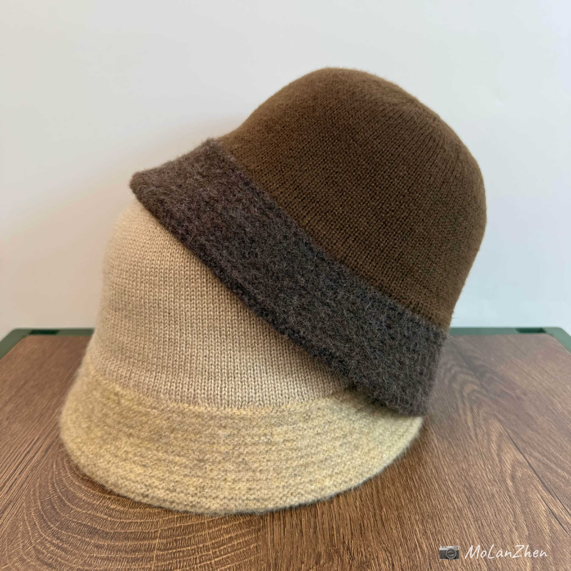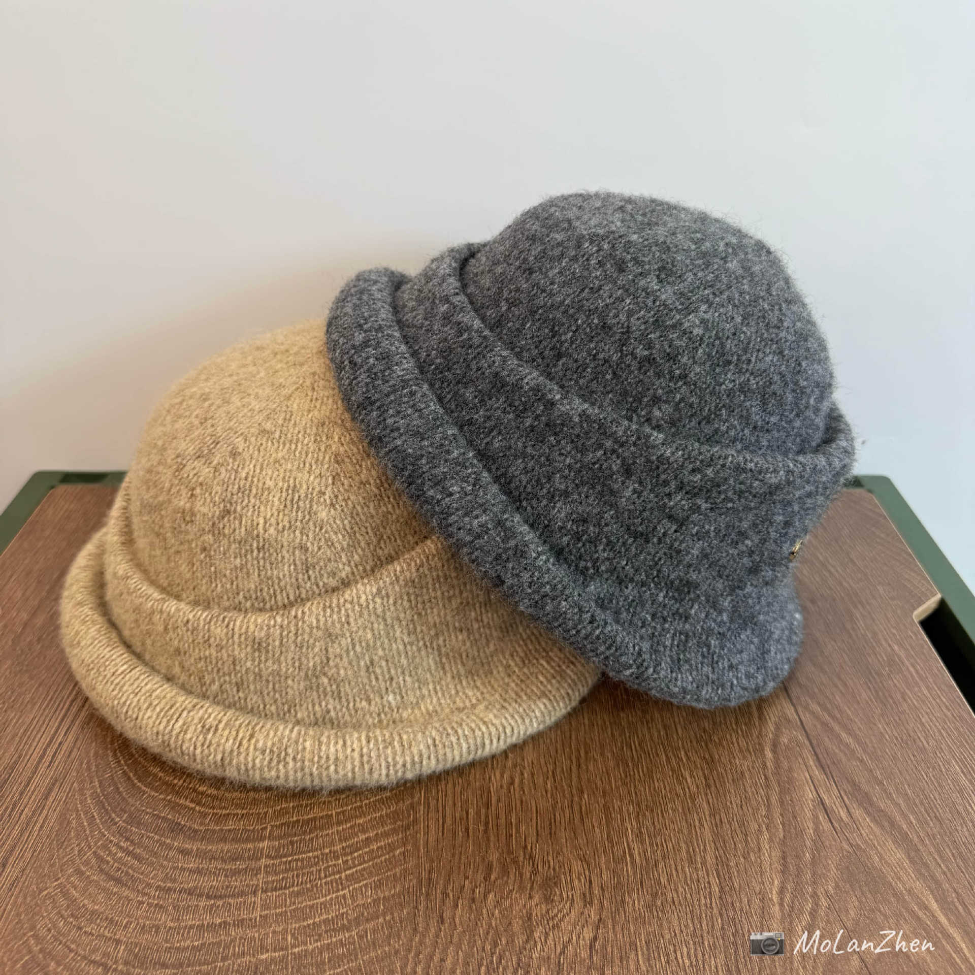 高品质羊毛拼针织渔夫帽秋冬厚款保暖女生气质复古灯罩帽圆顶盆帽