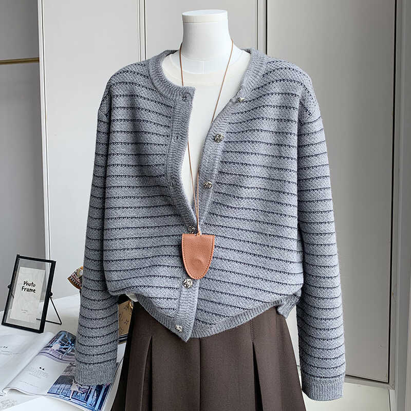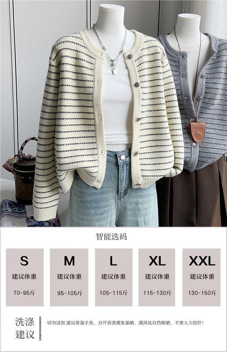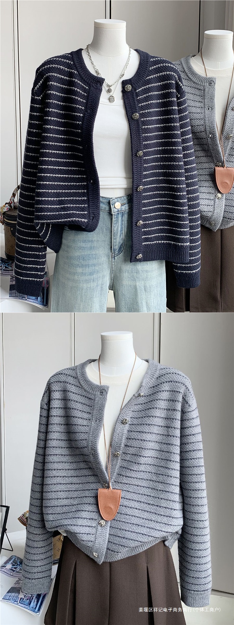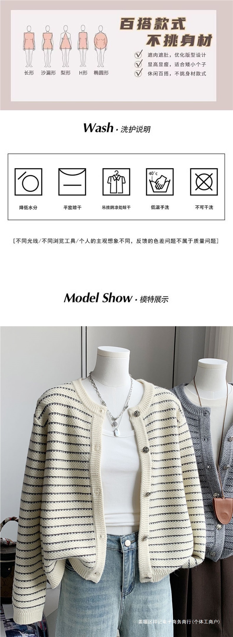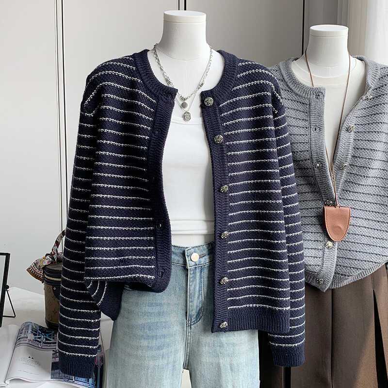 法式小香风百搭条纹针织开衫秋季新款女装宽松高级感叠穿毛衣外套