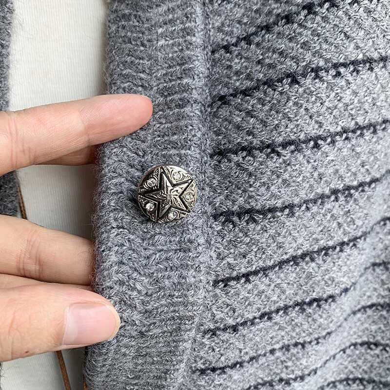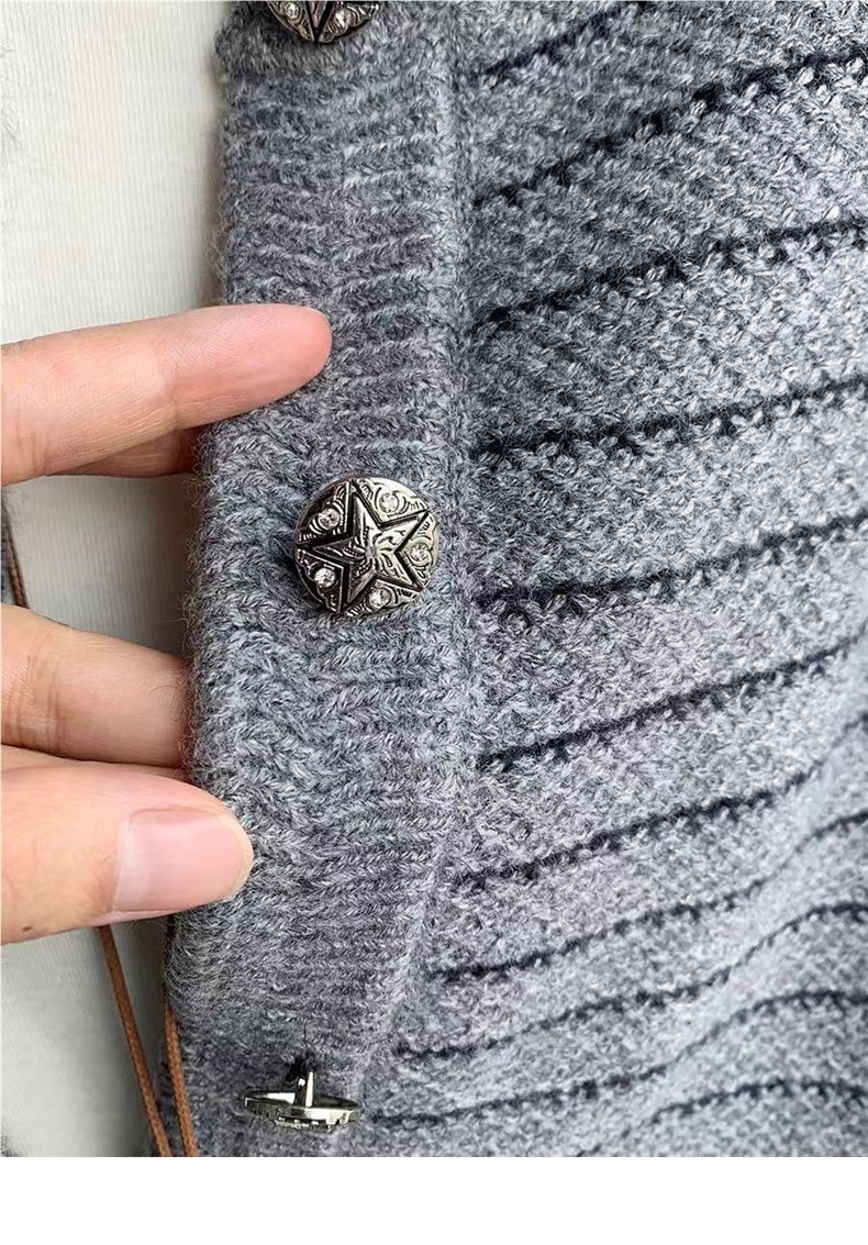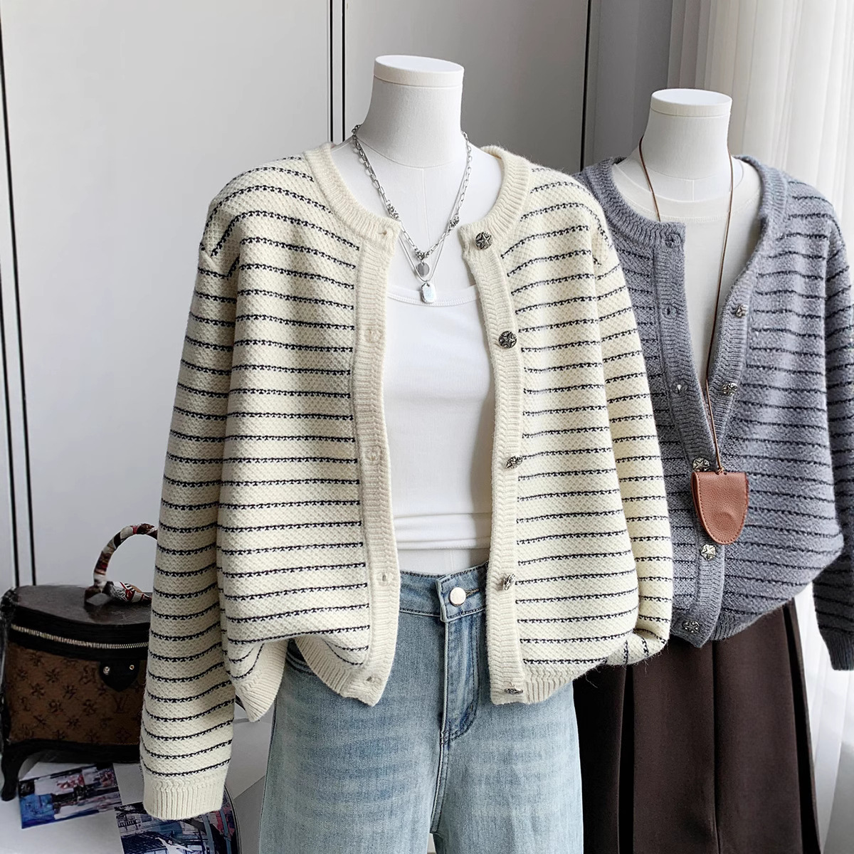 法式小香风百搭条纹针织开衫春秋新款女装宽松感叠穿毛衣外套