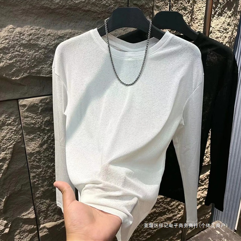 2024 新しい夏のメンズラウンドネック日焼け防止服長袖 Tシャツファッショナブルでシンプルなトップイントレンディで通気性