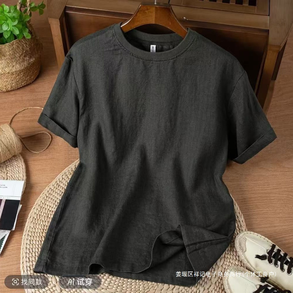2025 ファッショナブルで多用途な男性用半袖シャツ、ゆったりとした文学的でレトロなコットンとリネンの T シャツ トップス グレー ホワイト レッド