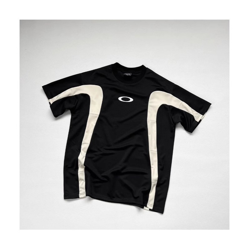 中古 O@kley 00s 幾何学模様のステッチが施された機能的なアウトドア速乾半袖 T シャツ、男性と女性向け