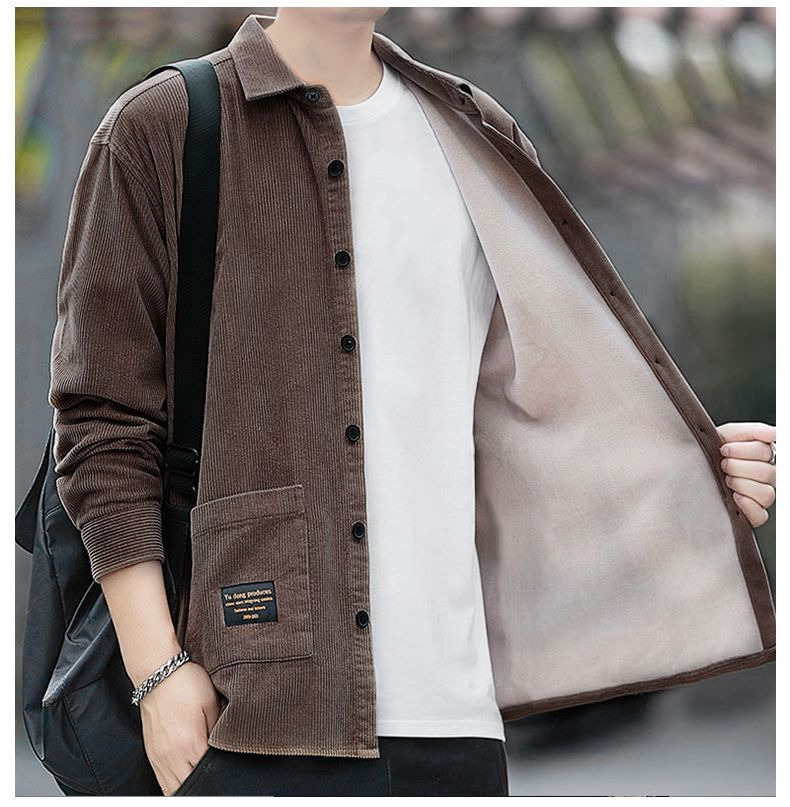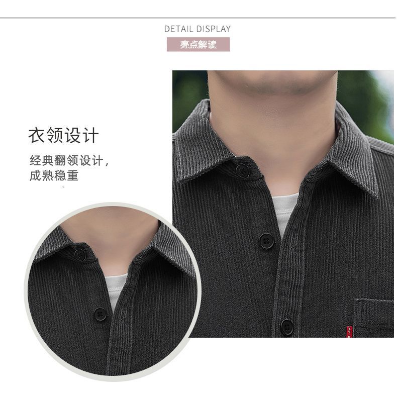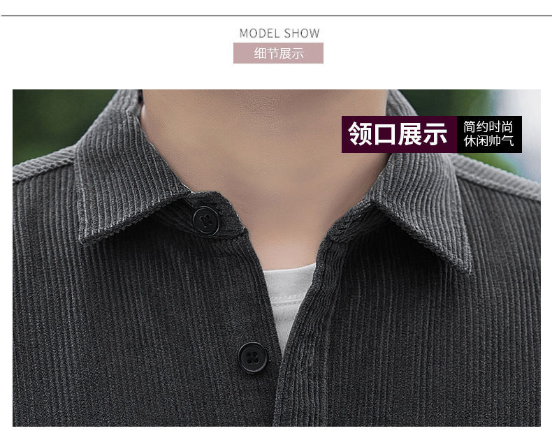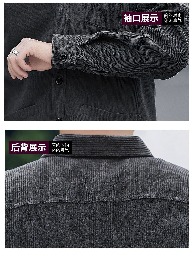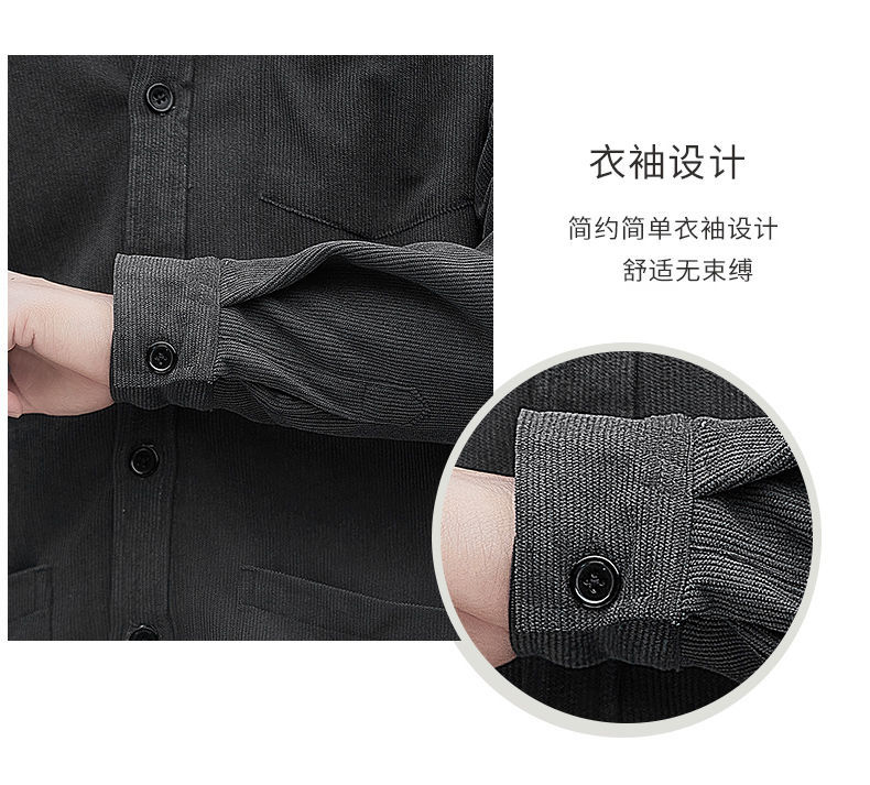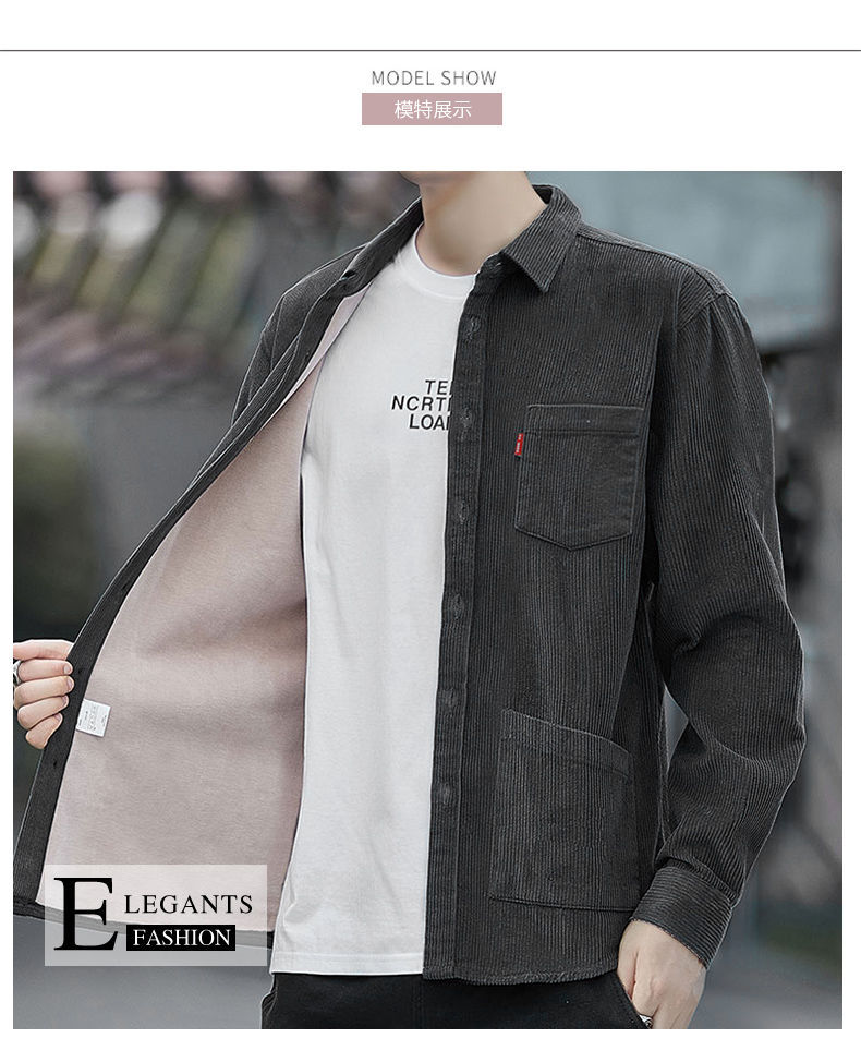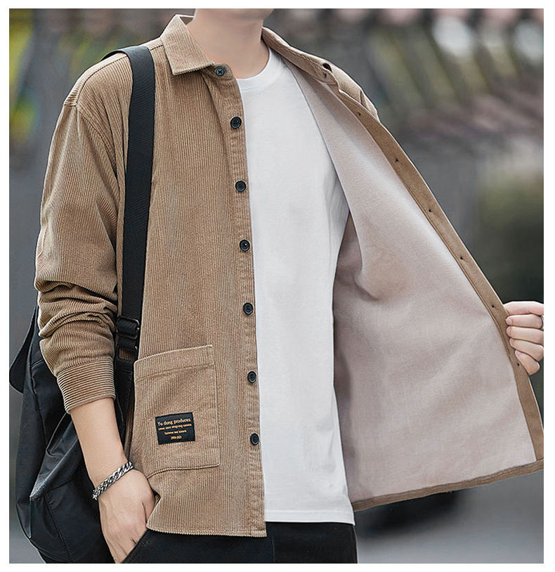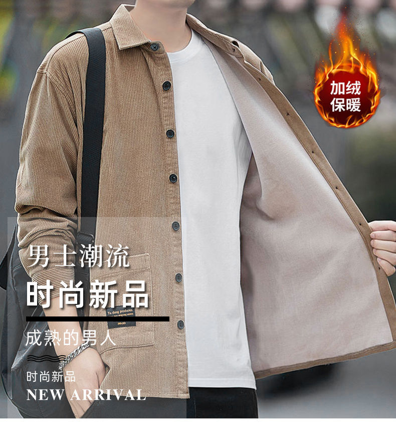 2025秋季加绒灯芯绒真口袋男士长袖外套纯色休闲衬衣潮流男寸衫潮