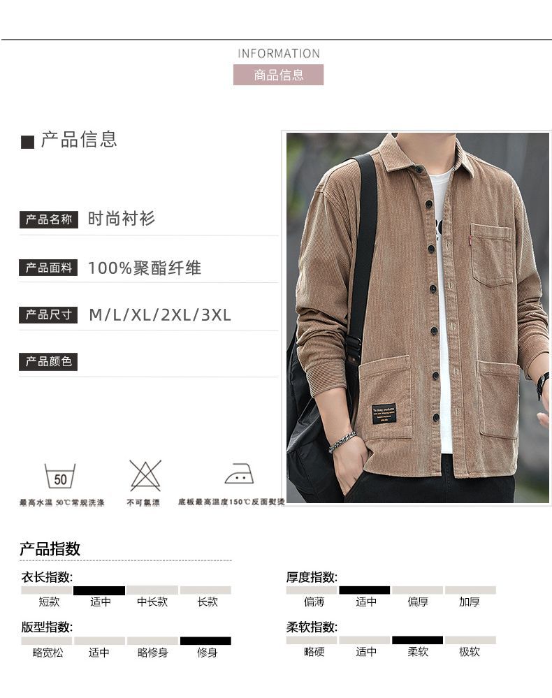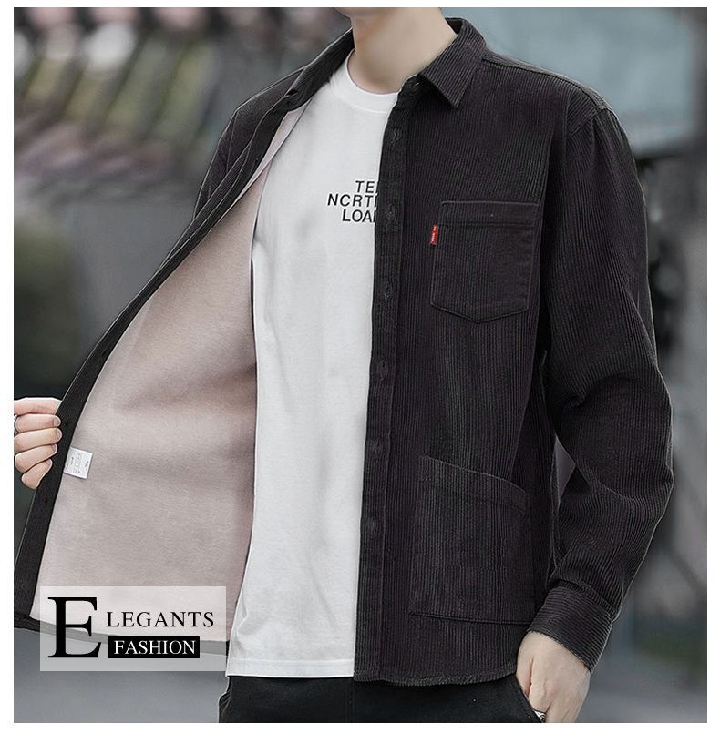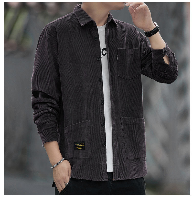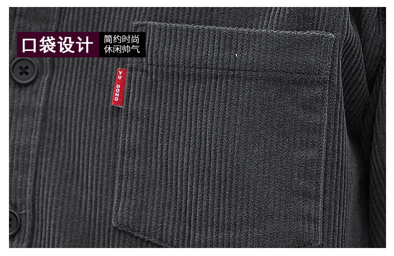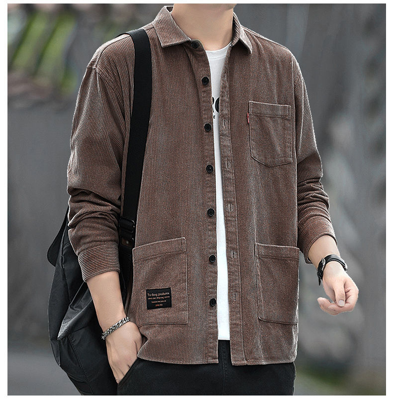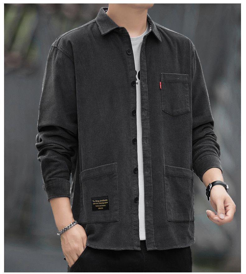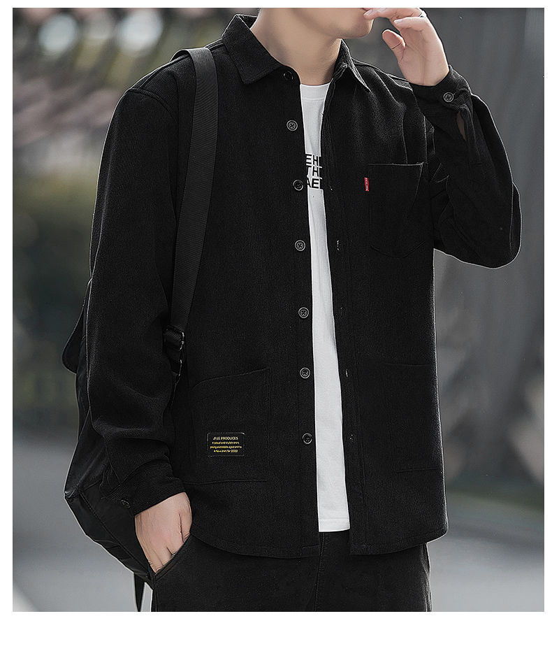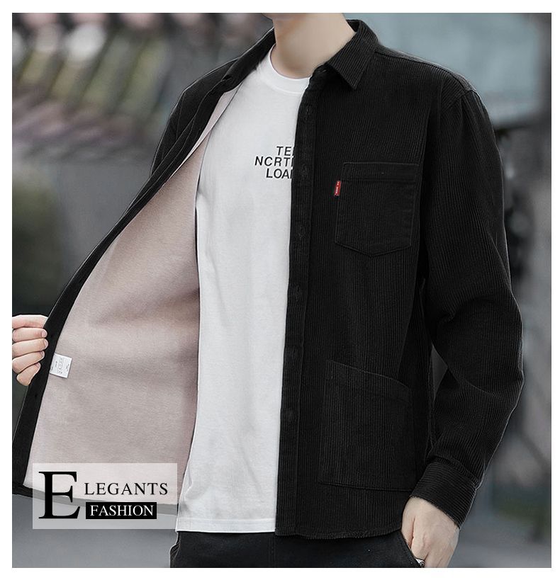 2025秋季加绒灯芯绒真口袋男士长袖外套纯色休闲衬衣潮流男寸衫潮