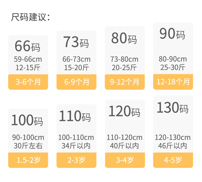 适合身高 73CM,80cm,90cm,100cm,110cm